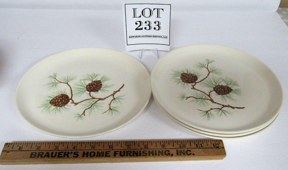 Vintage French Saxon China, USA, Pine Cone Pattern 9" Dinner Plates, Set of 4