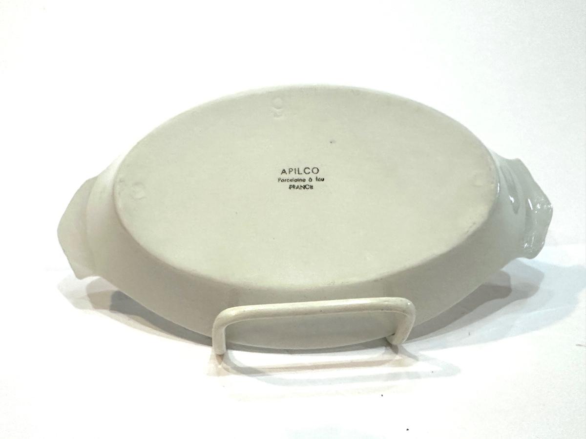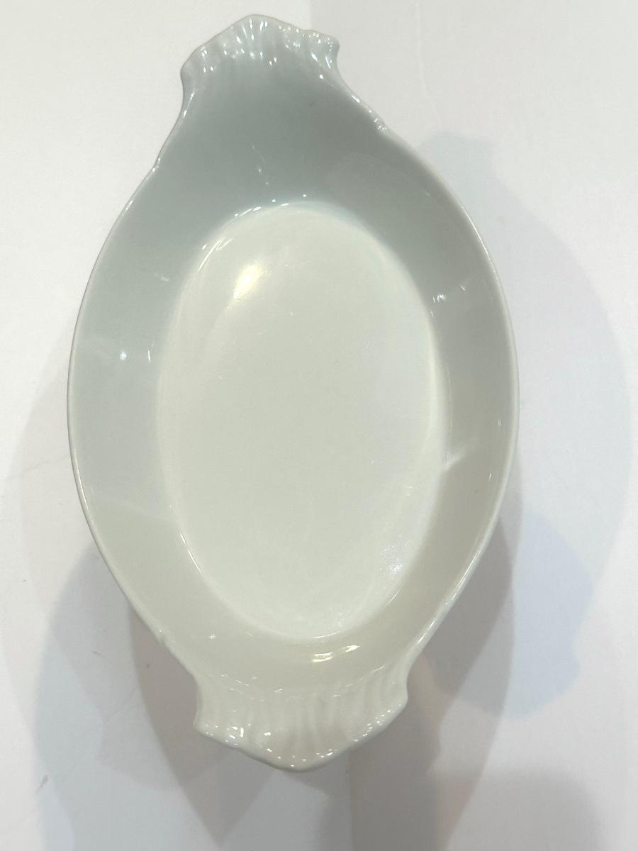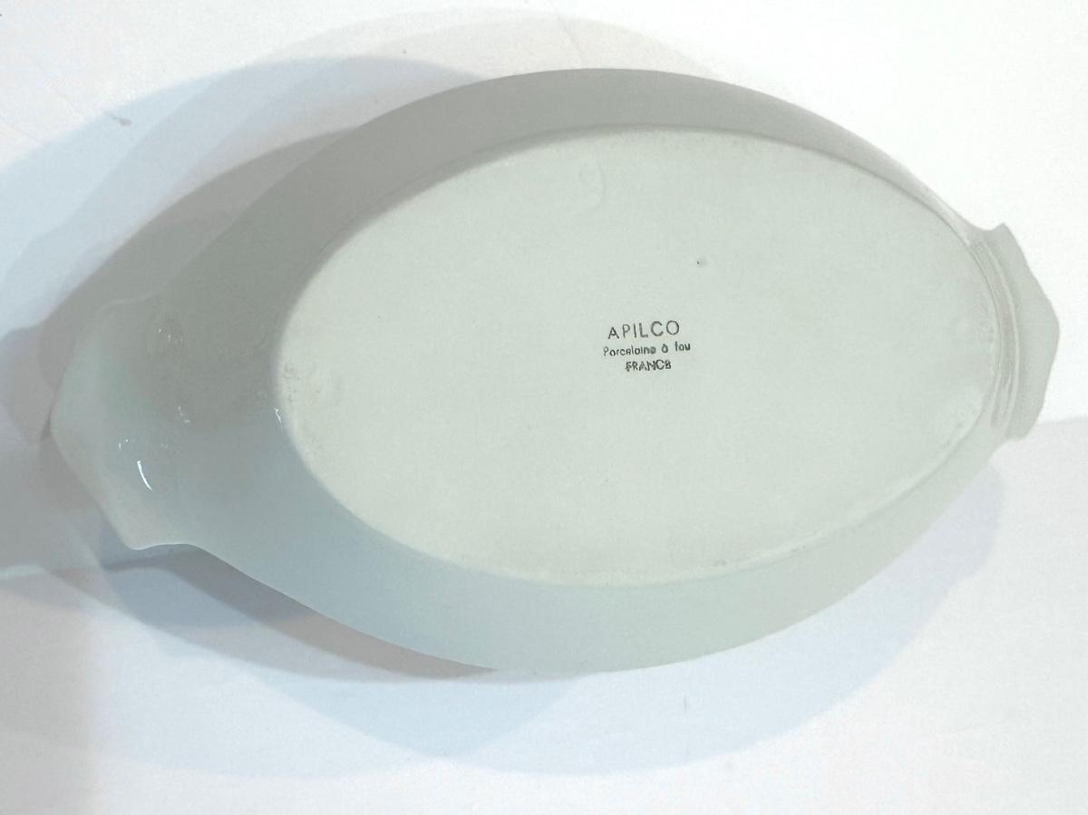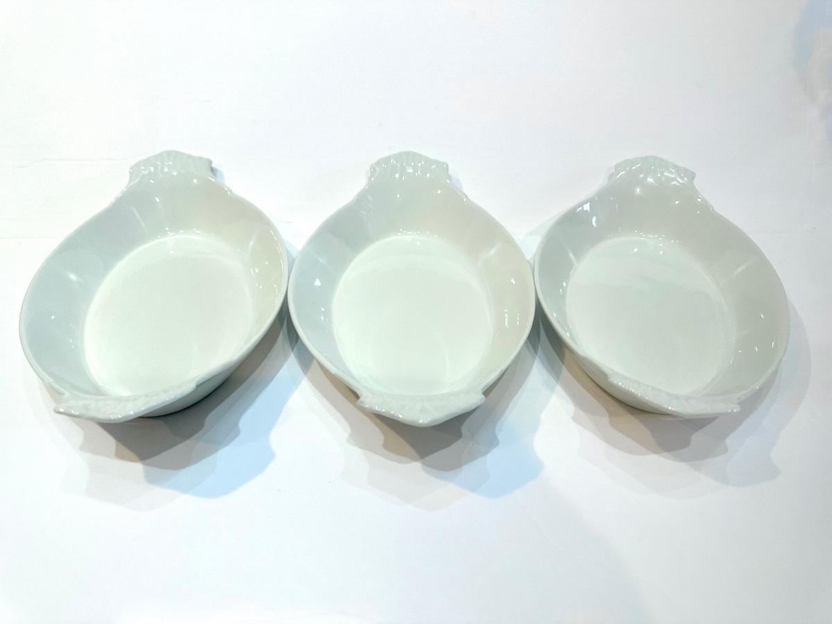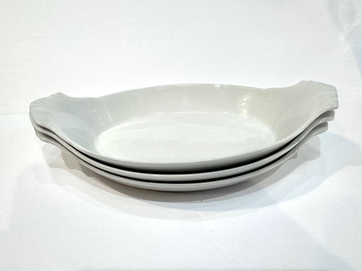 Set of 3, white, scalloped au gratin porcelain baking dishes by Apilco
