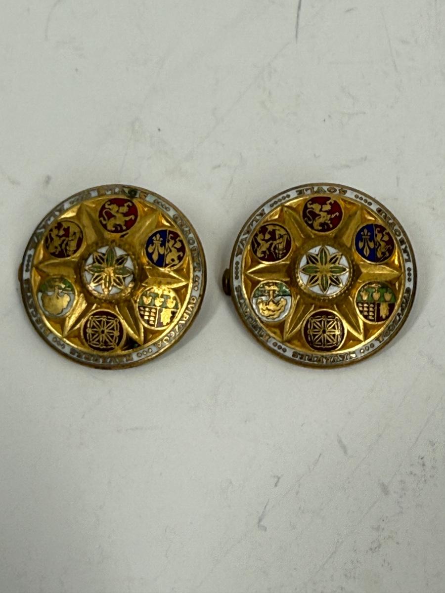 Vintage French Basque Zazpiak Bat Oritza Brooch Pins or Medals Circular Shield Shape Enamel Shields