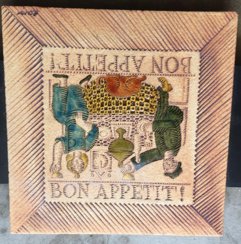 Vintage French Ceramic "Bon Apetit" Plate signed Stamped on the Back Made in France