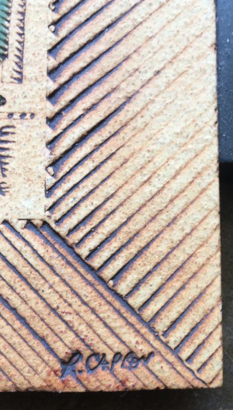 Ceramic handles as well, signed by the artist lower right, in fine conditions. Measures 11" in width and 9" in height.