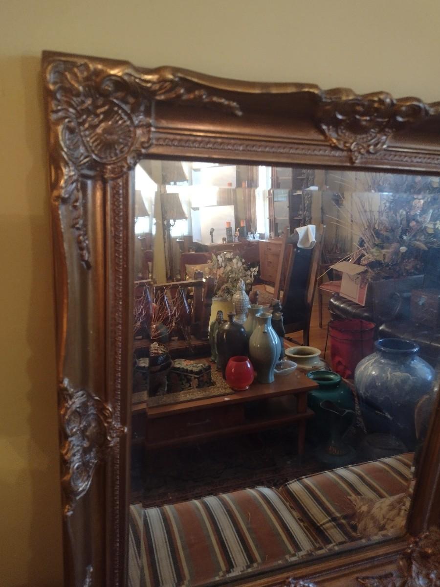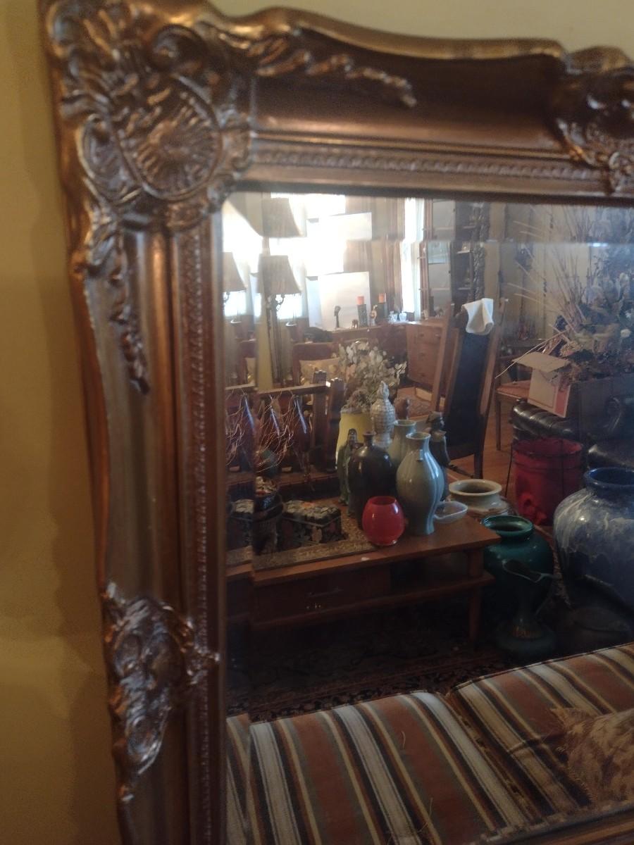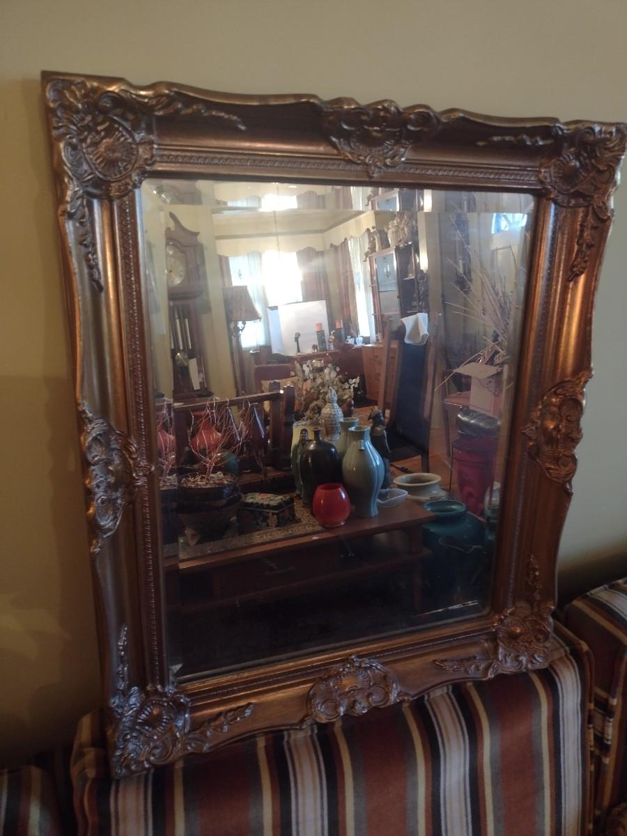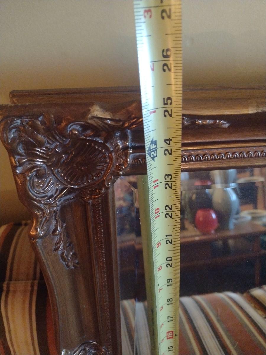 Vintage French Country Wood Framed Wall Mirror with Beveled Glass