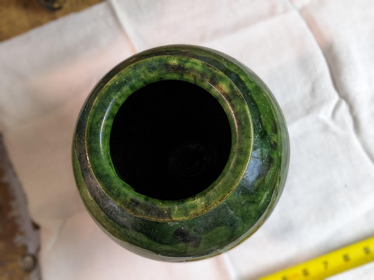 Vintage French Green Clay Vessel