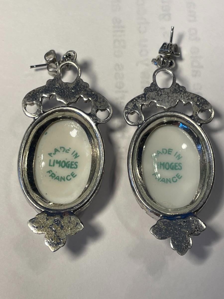 Vintage French Limoges Transferware Dangling Fashion Earrings in VG Preowned Condition. $5 DOMESTIC SHIPPING.
