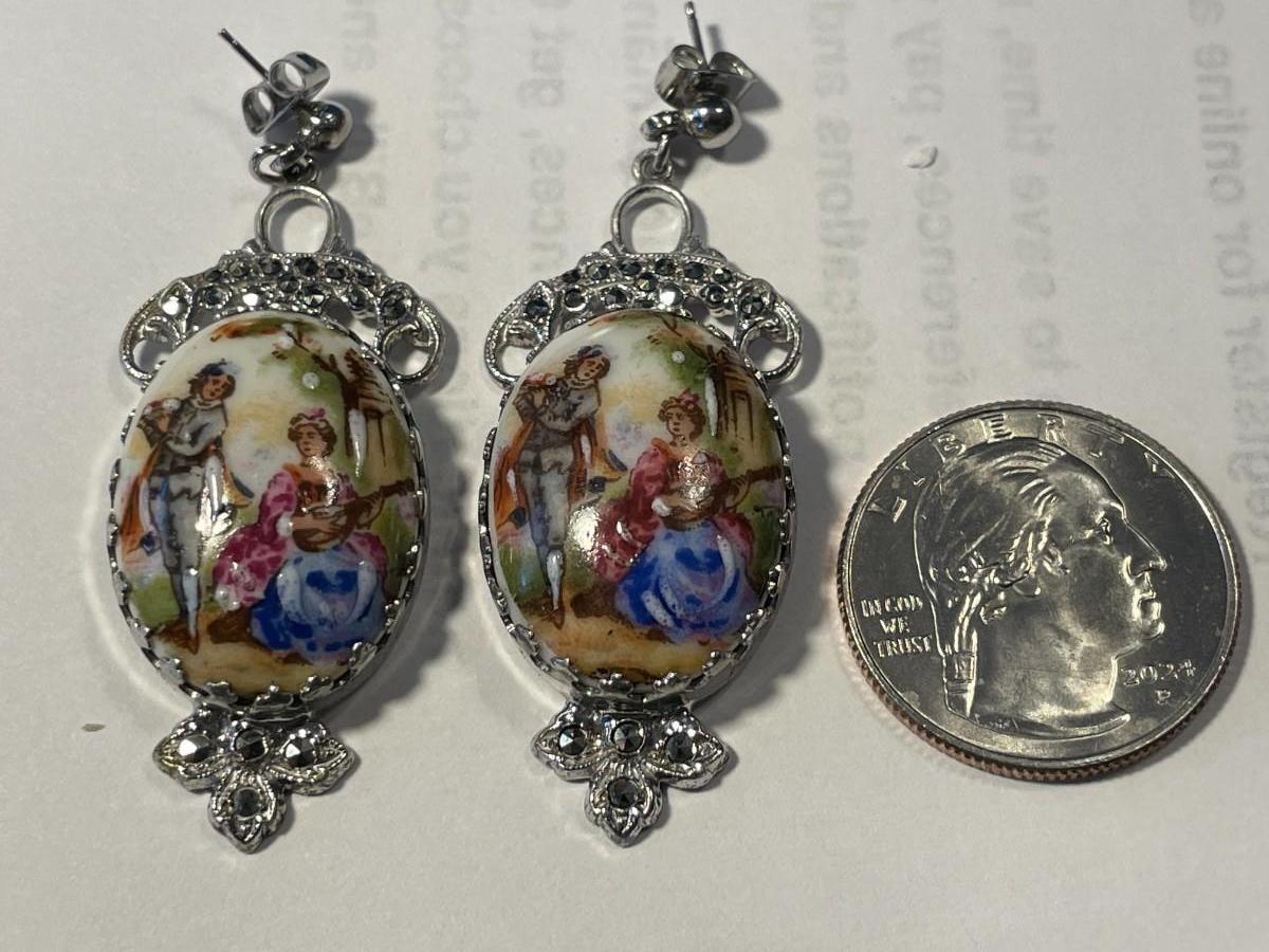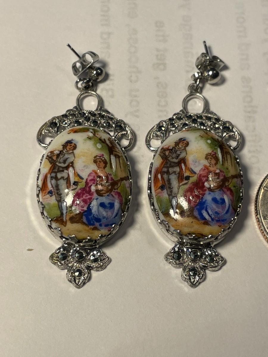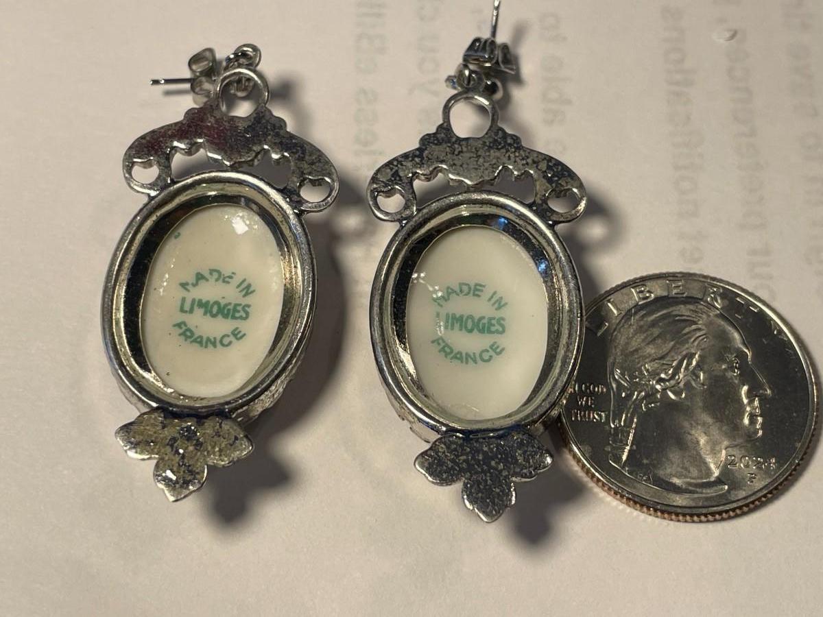 Vintage French Limoges Transferware Dangling Fashion Earrings in VG Preowned Condition. $5 DOMESTIC SHIPPING.