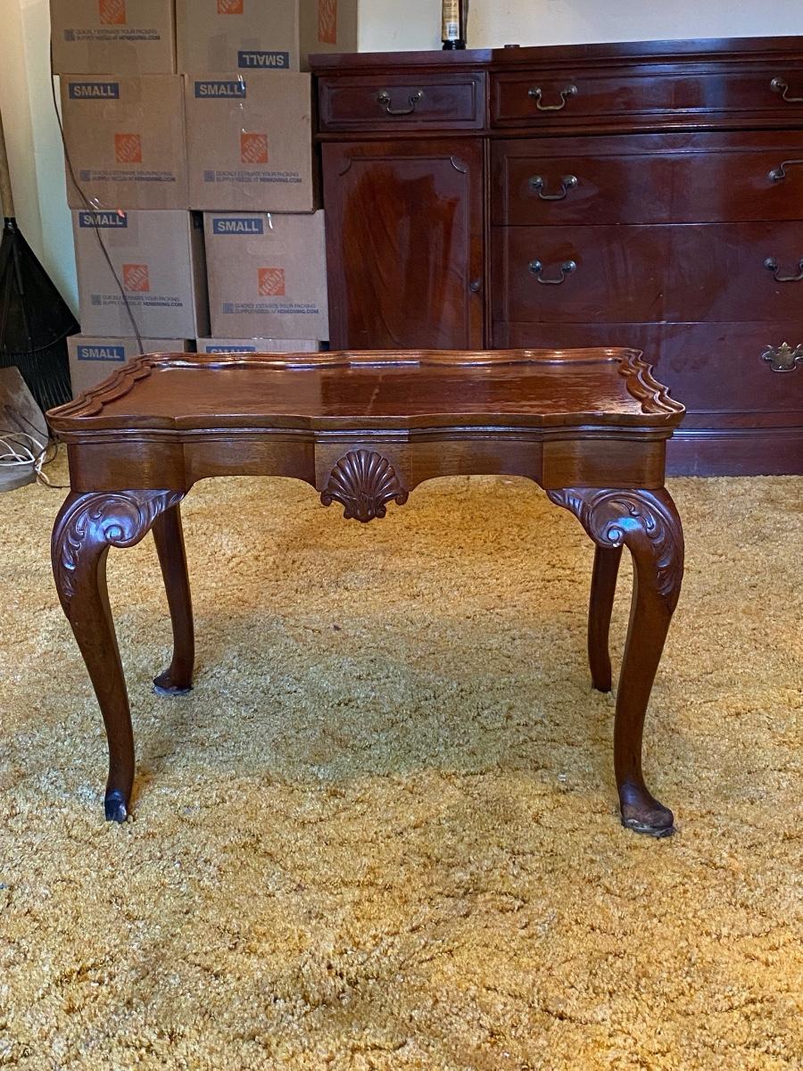 Lovely antique chippendale side table with shell motif. Amazing patina to mahogany. Loss to two of feet but table stunning. . Height 18" , Width 24 1/2", and Depth 17 1/2"