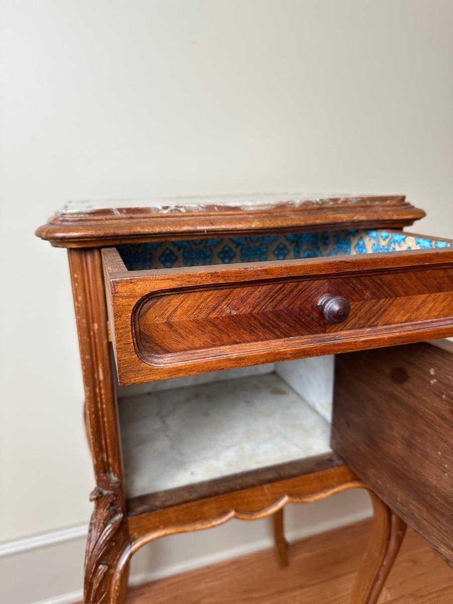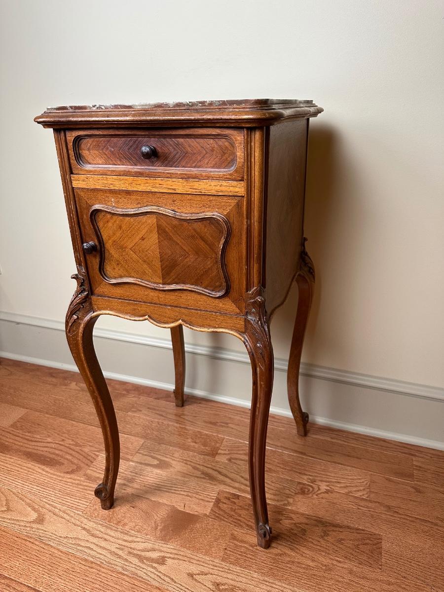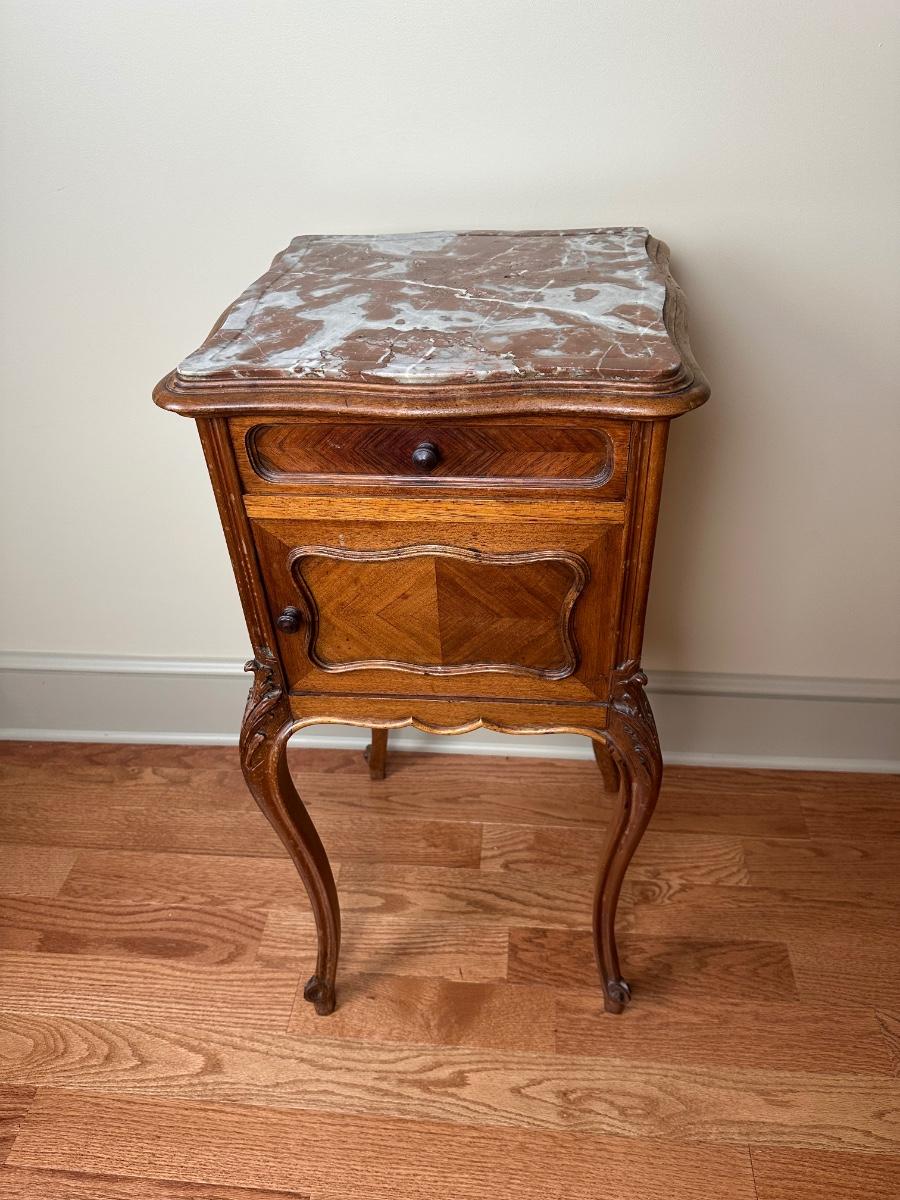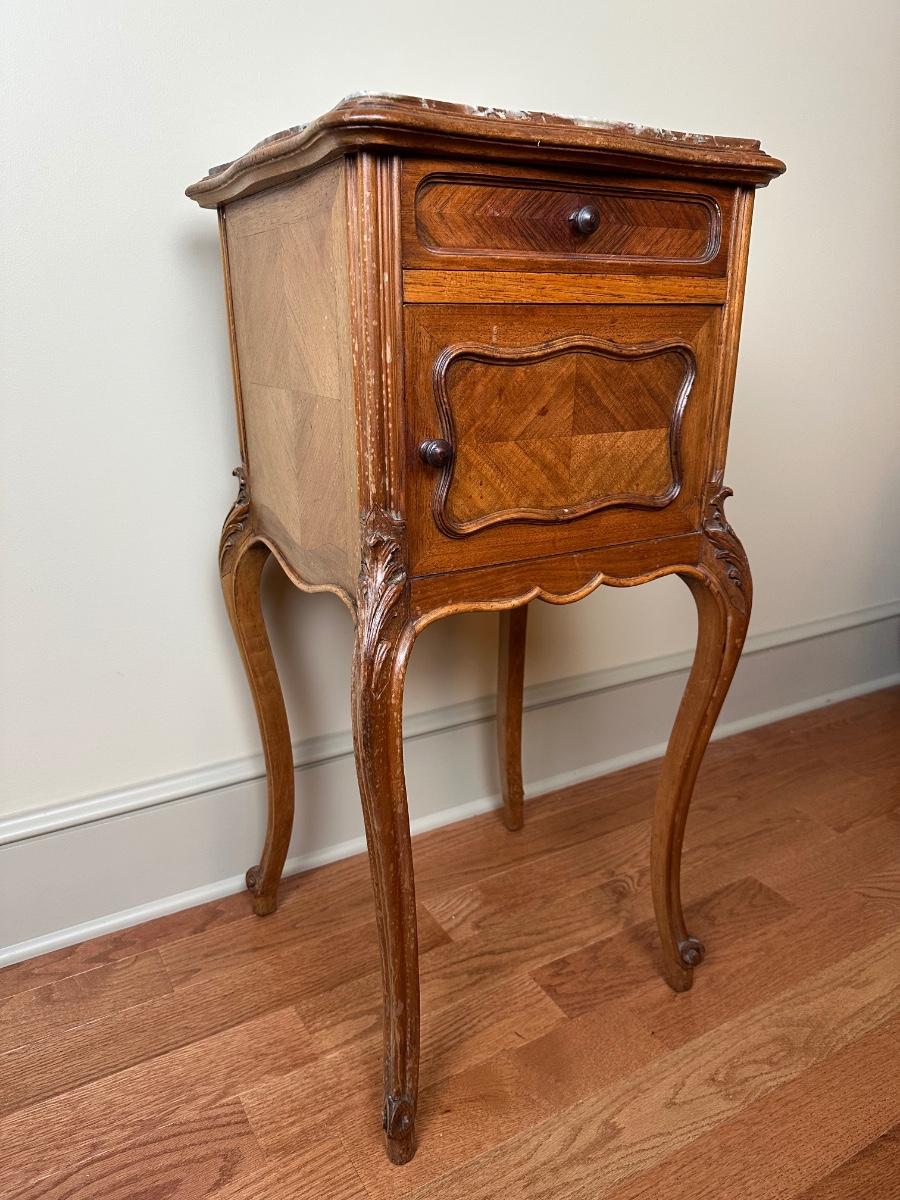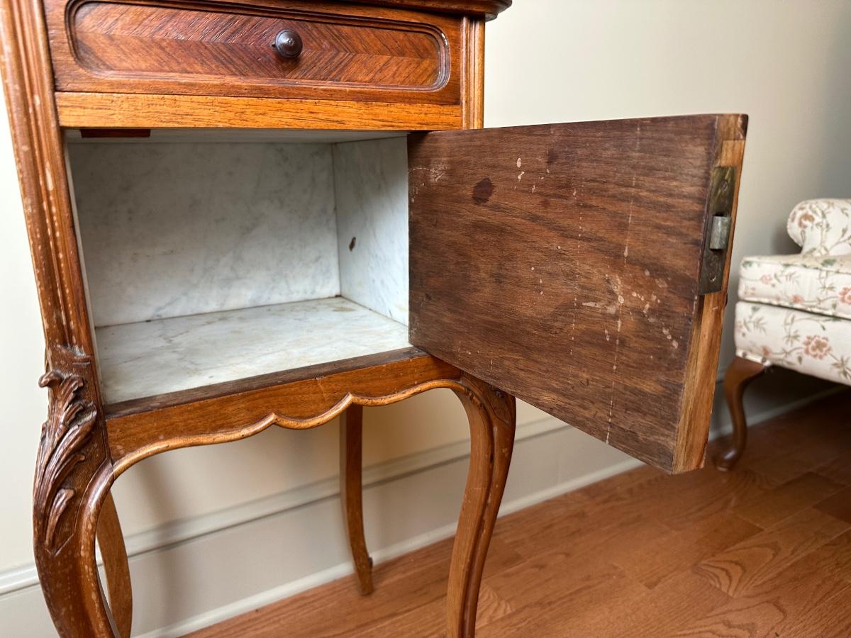 Vintage French Louis XV Style Marble Top Nightstand Cabinet