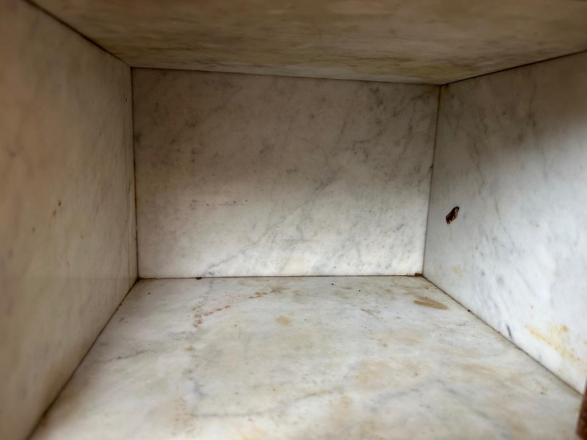 There is minor aging on the wood and inside the cabinet - see pictures.