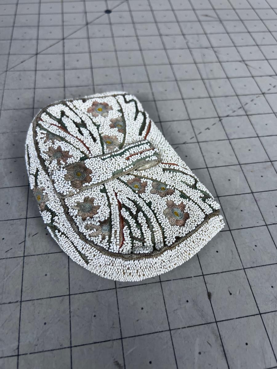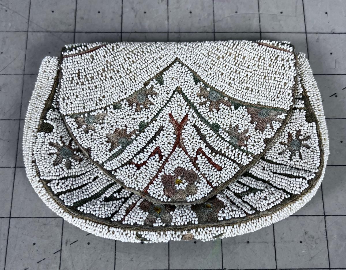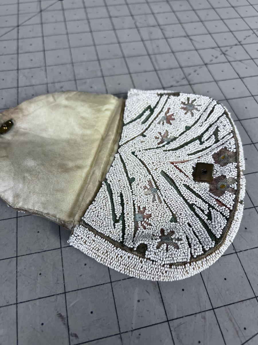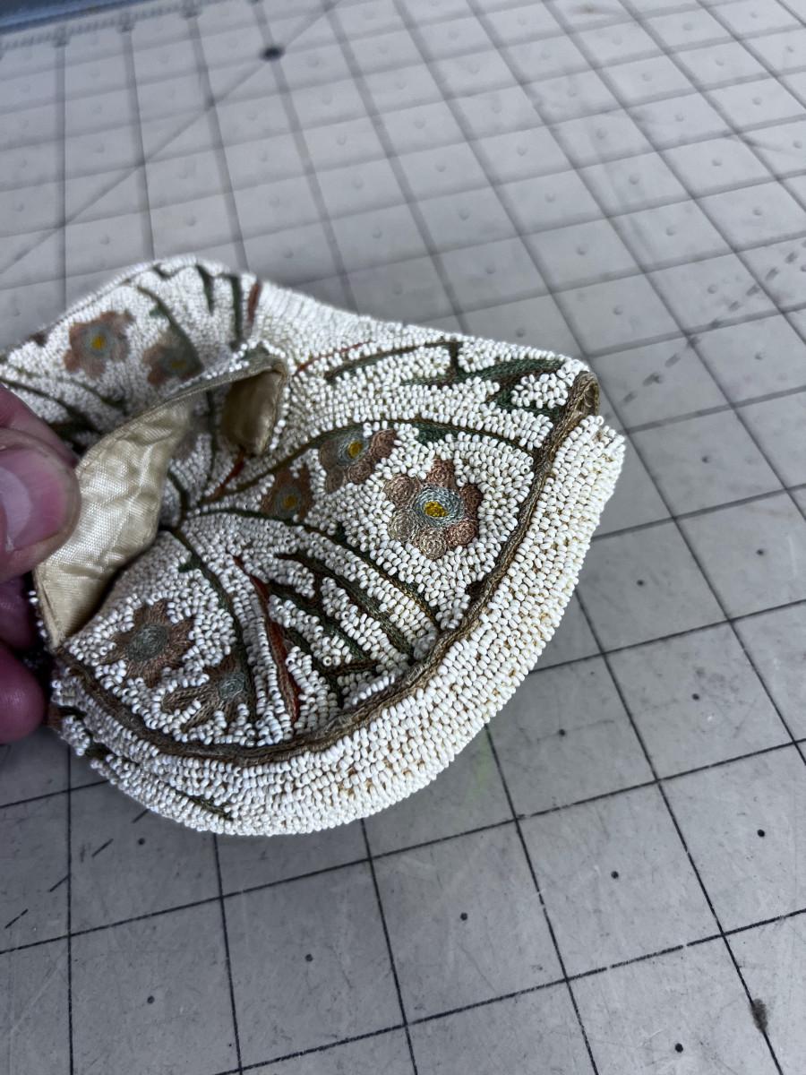 vintage French Micro Bead Tambour Embroidery Evening Bag Clutch Purse