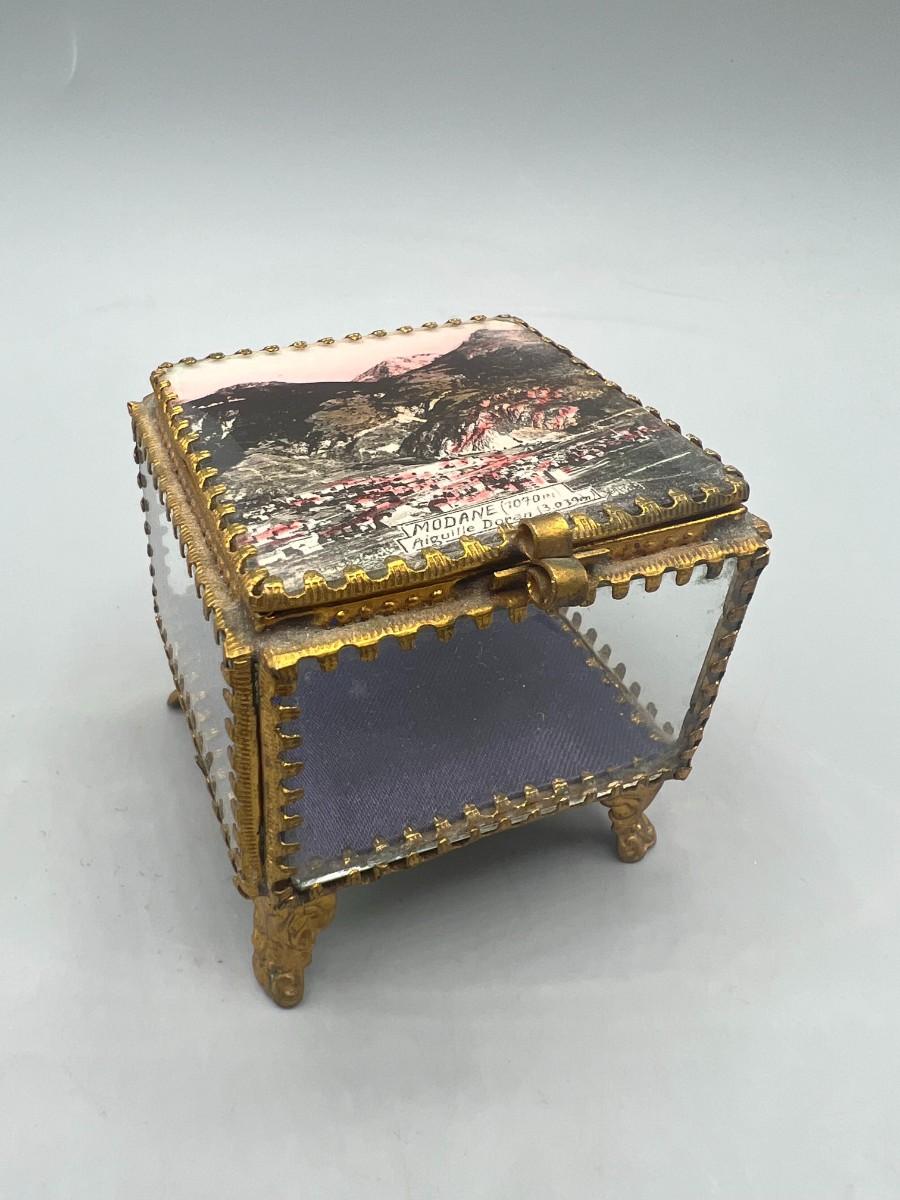 Vintage French Modane Aiguille Doran Glass Jewelry Casket Trinket Box