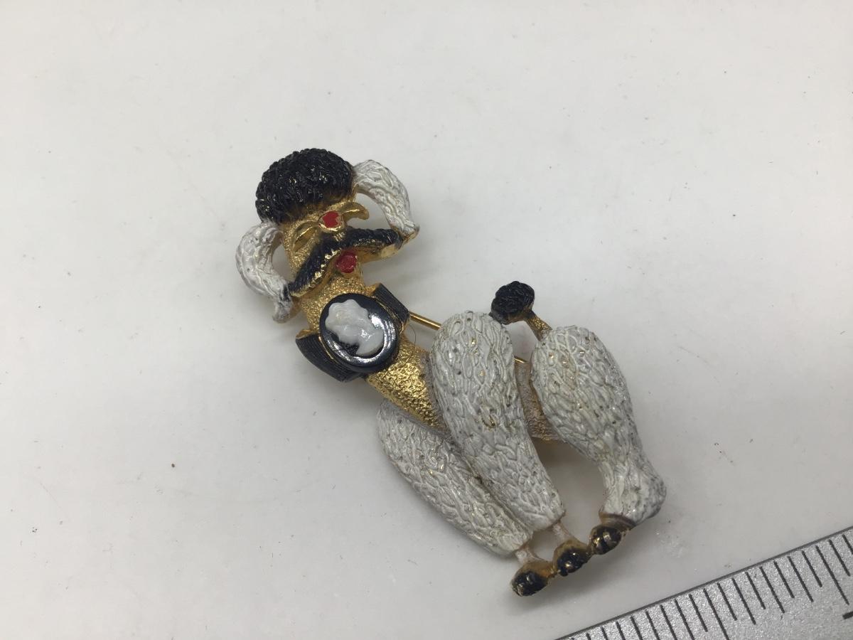 Vintage French Poodle Dog Pin/Brooch with cameo