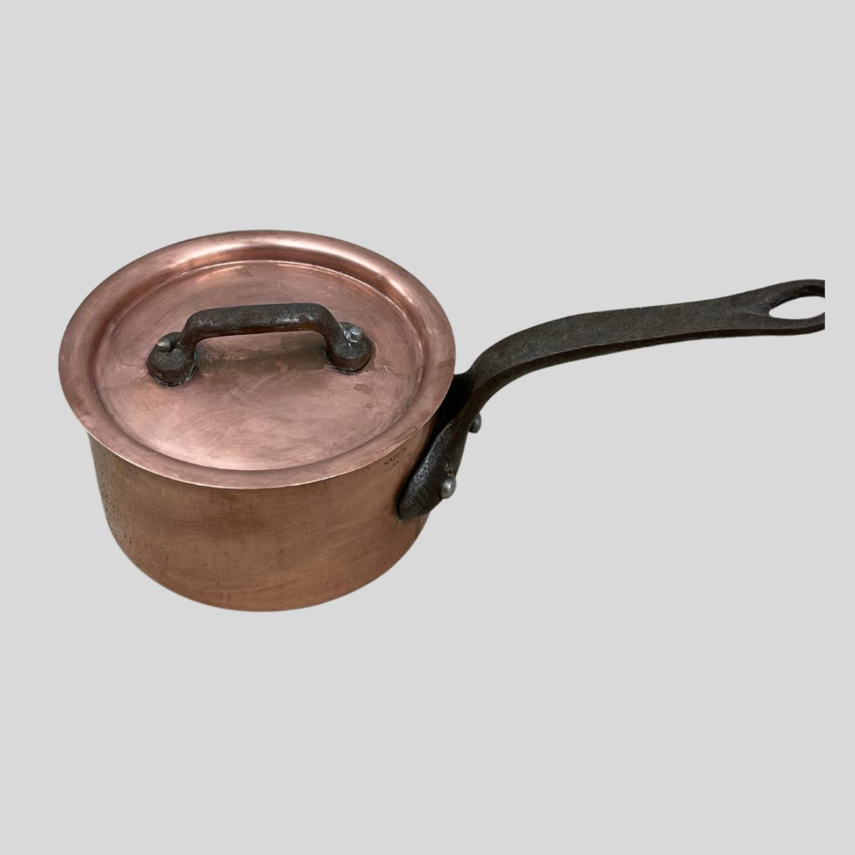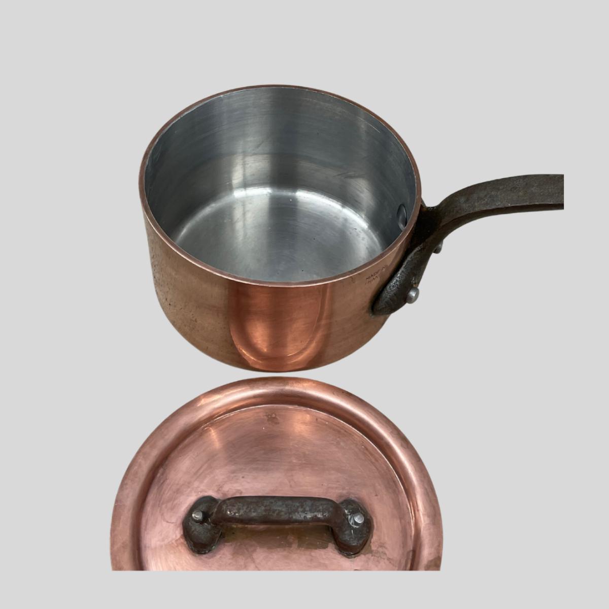 Vintage French Professional Heavy Hammered Copper Butter Warmer with Cast Iron Handles and Lid