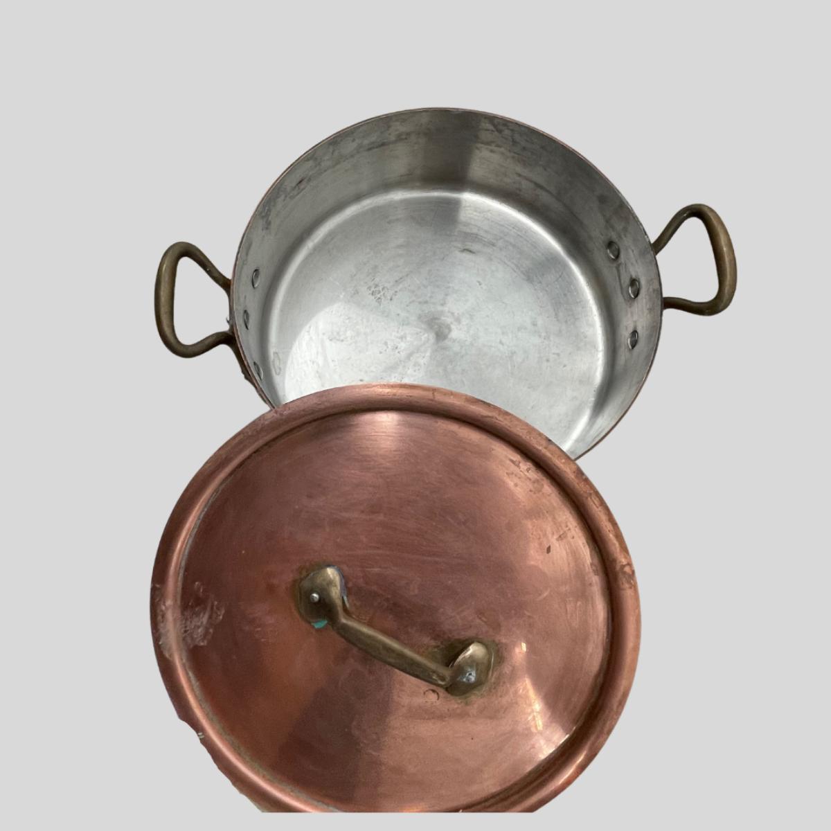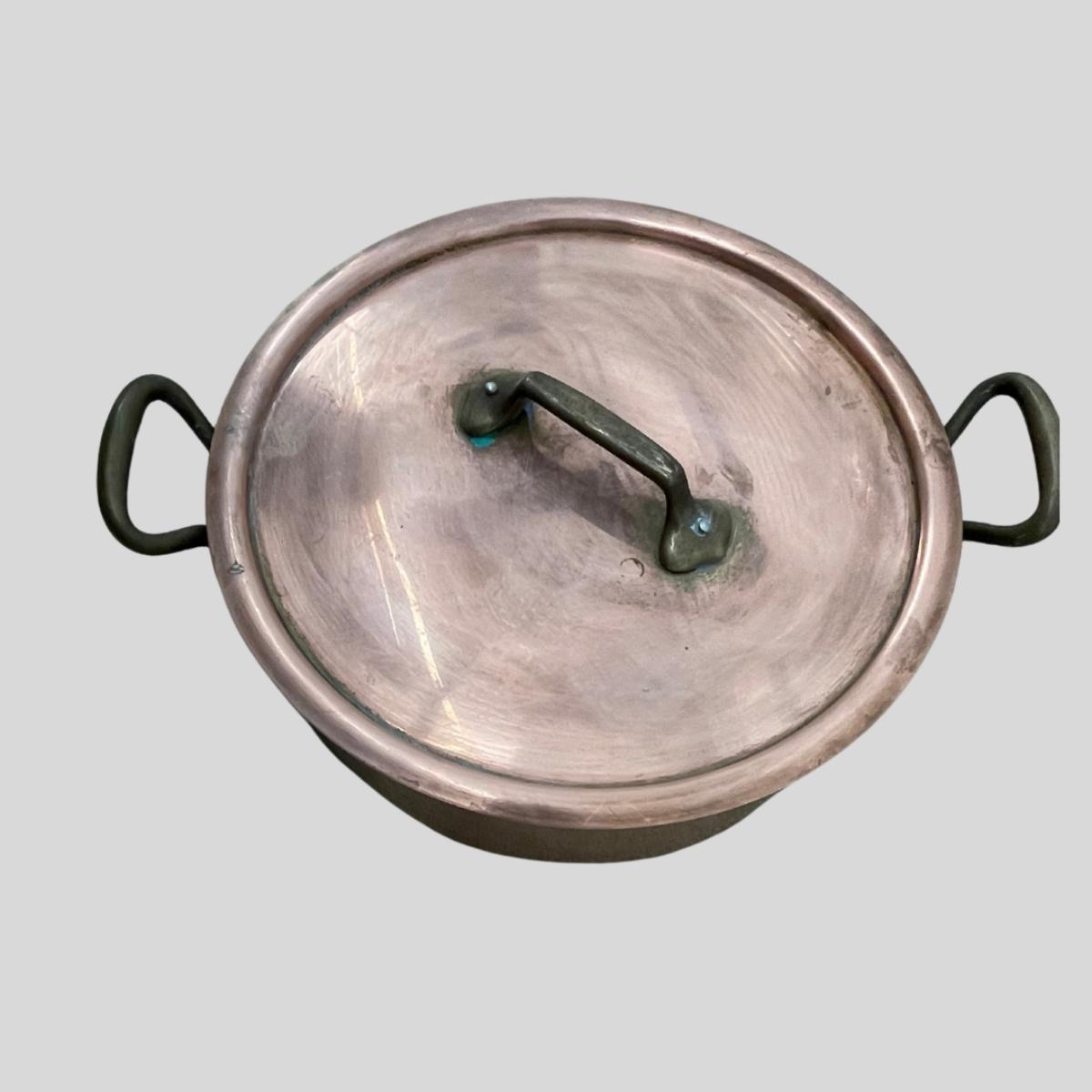 Vintage French Professional Heavy Hammered Copper Stew Pot with Cast Iron Handles and Lid