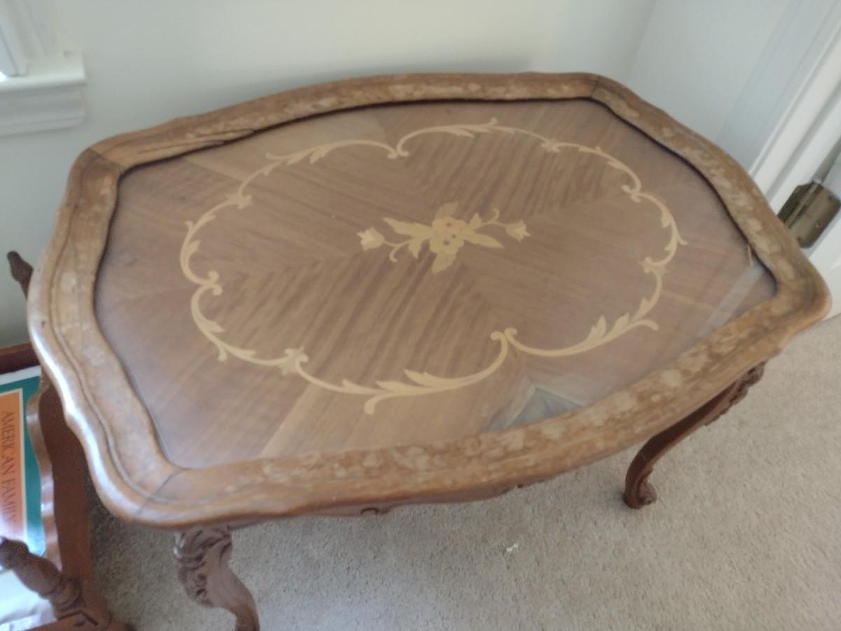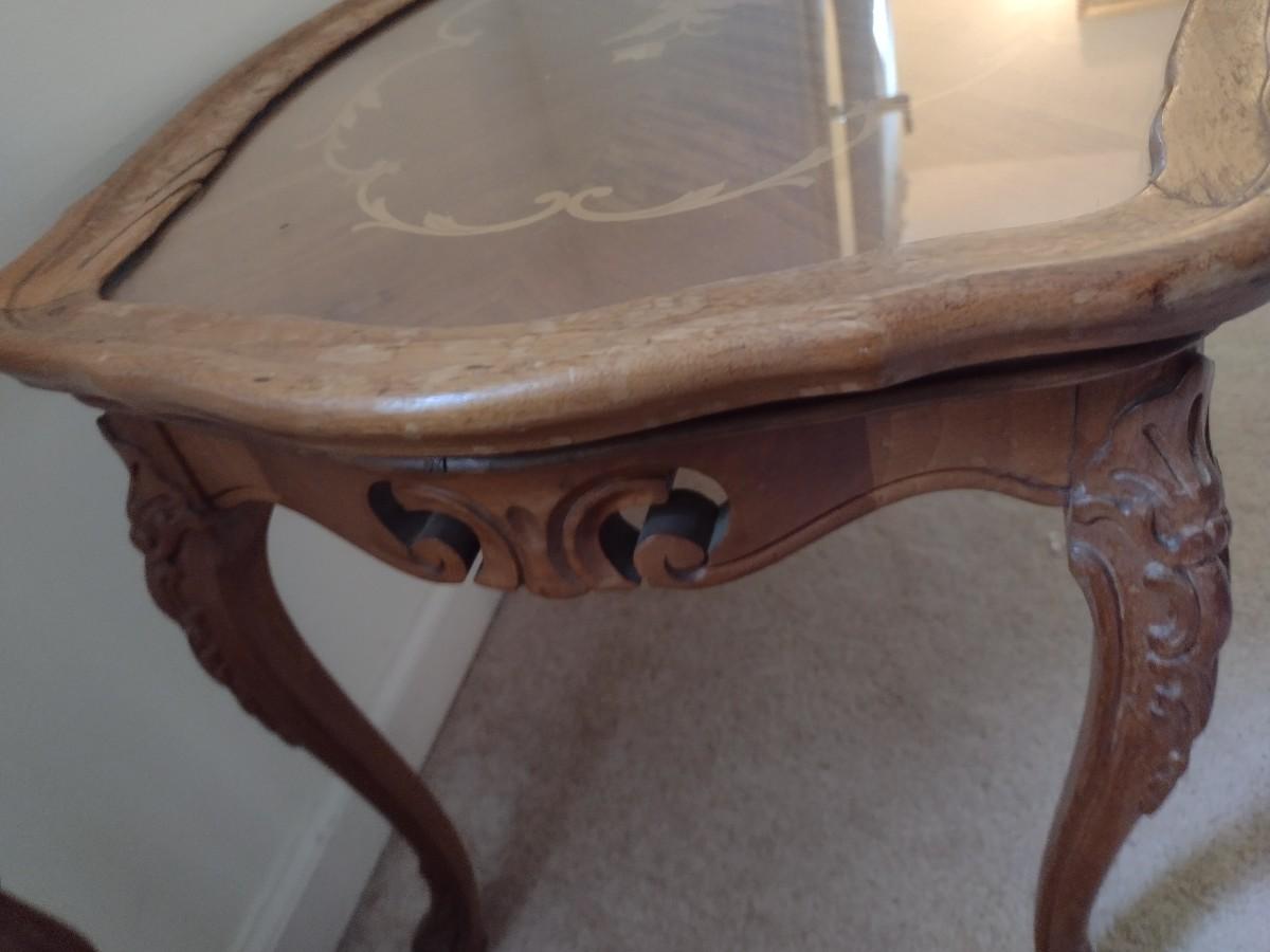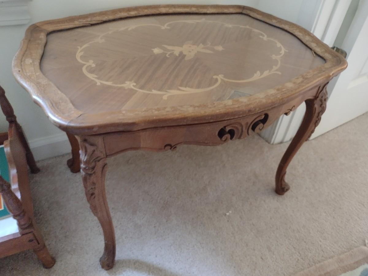 Vintage French Provencial Wood Inlaid Side Table