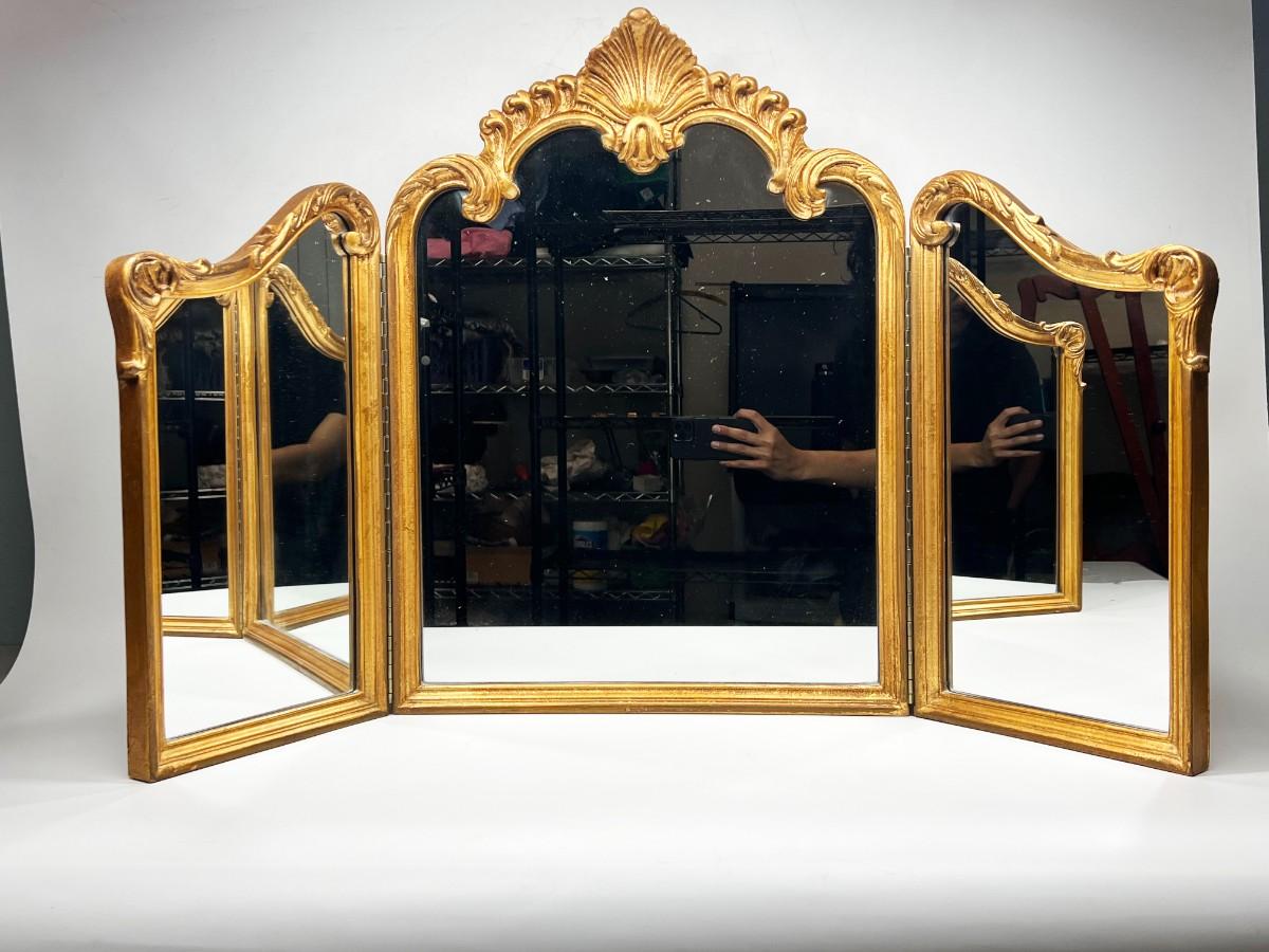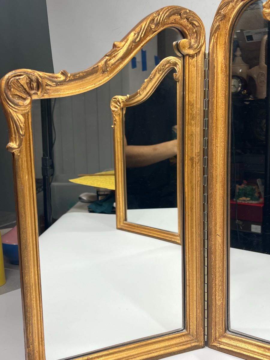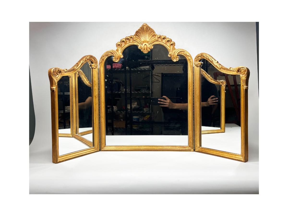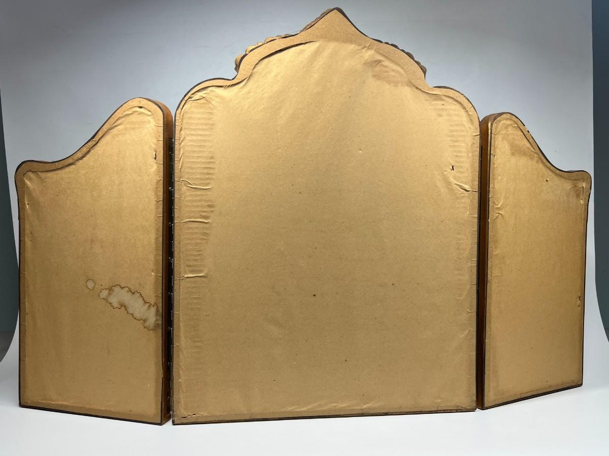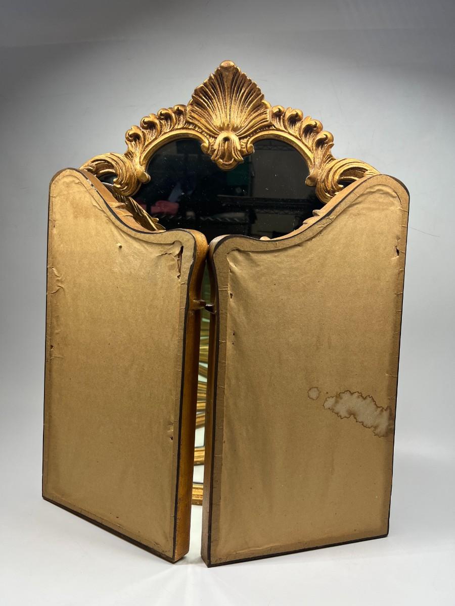 Vintage French Provincial Folding Triptych Gold Trim Vanity Mirror