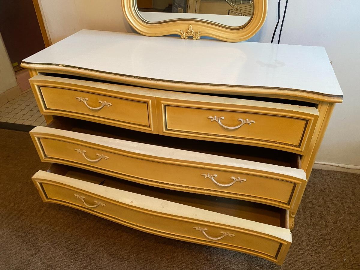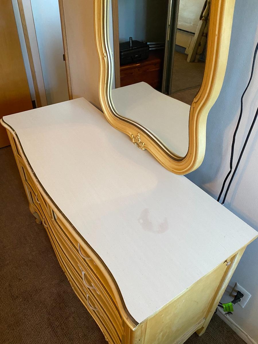 Vintage French Provincial Three Drawer Dress with Mirror. Some light wear to surface.