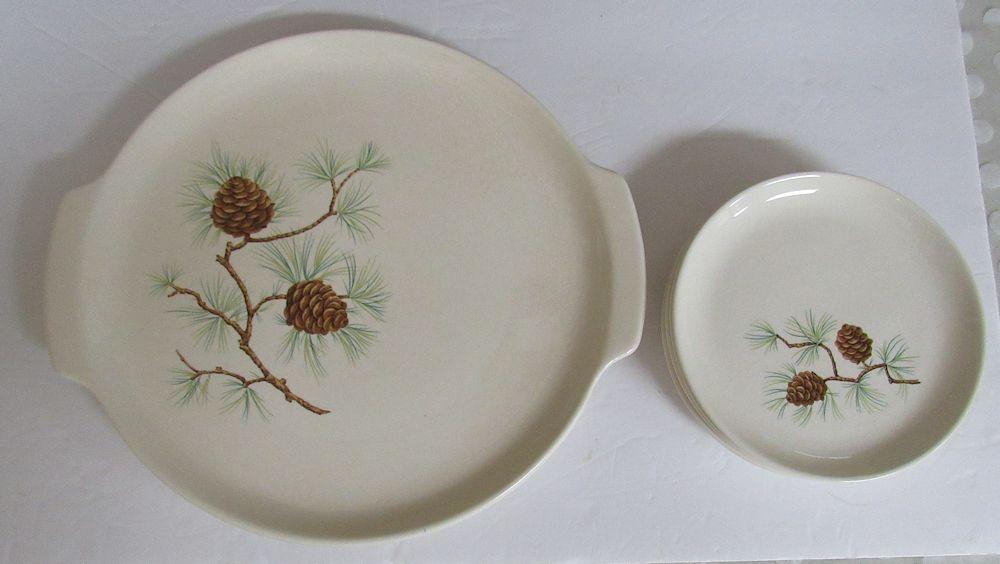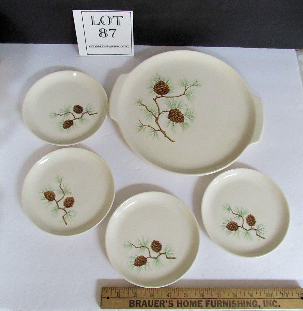 Vintage French Saxon China Pine Cone Cake Plate and Small Plates