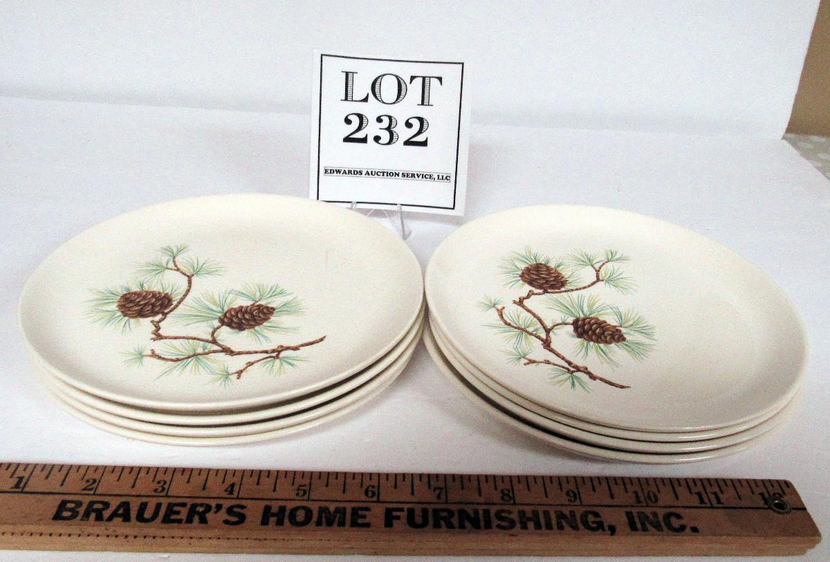 Vintage French Saxon China, USA, Pine Cone Pattern 7" Plates, Set of 8