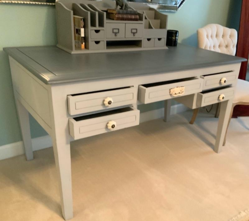 Elegant style lacquered desk with beautiful knobs. Exceptional look. Imported