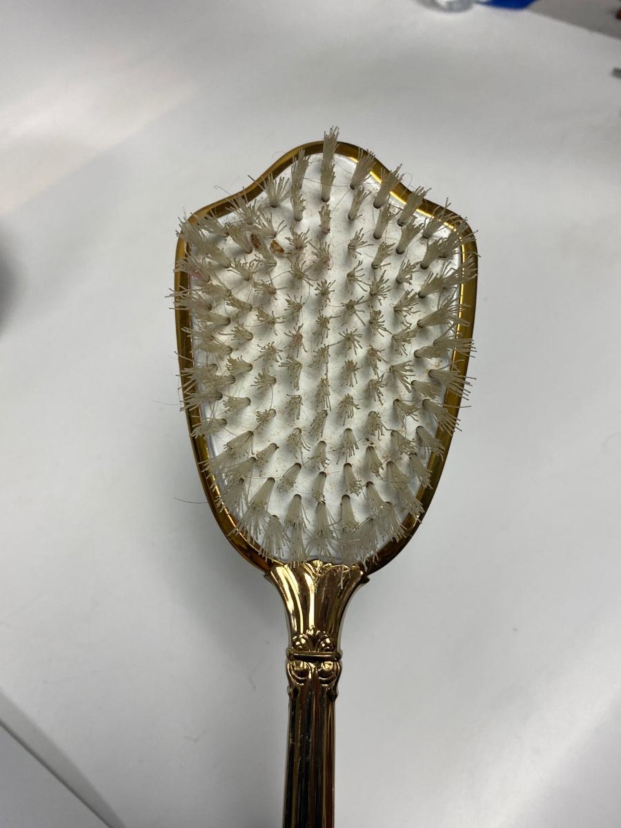 Vintage French Style Art Nouveau Makeup Hand Mirror & Hairbrush