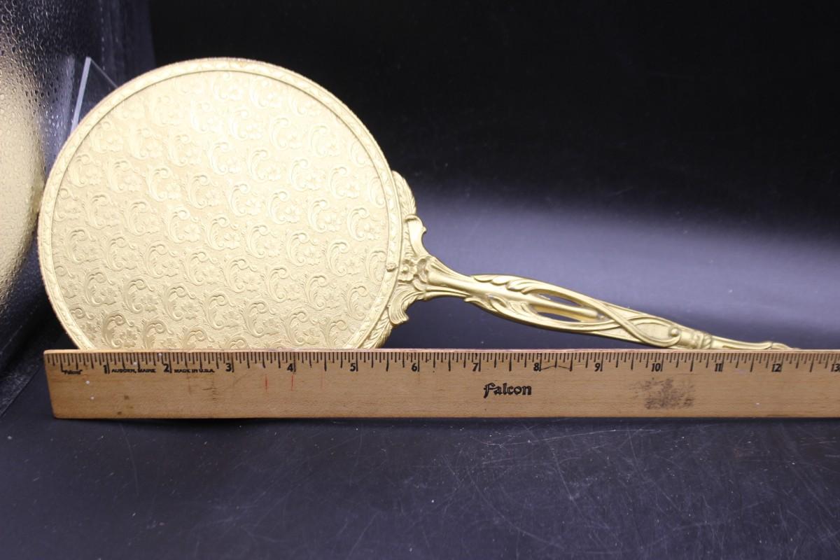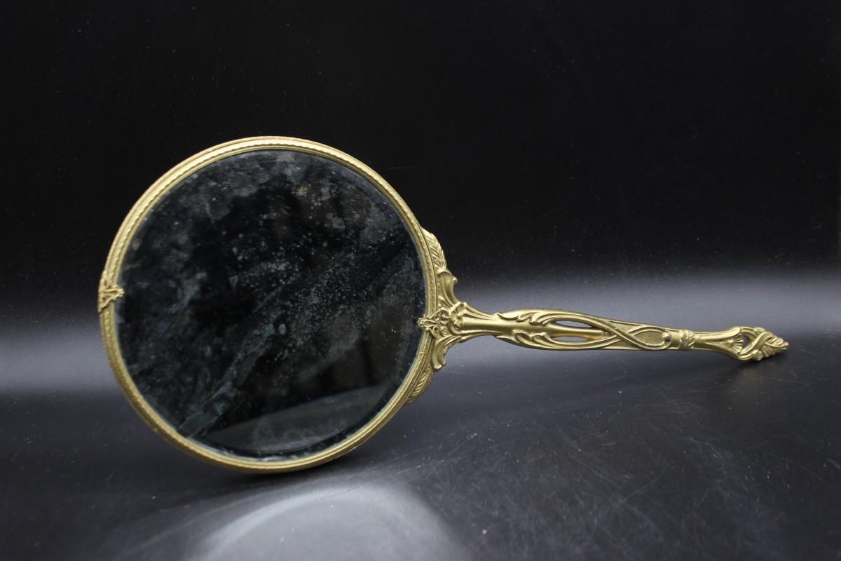 Vintage French Style Bronze Metal Art Nouveau Hand Mirror, there is no damage to the glass or metal and is in good vintage condition. Check pictures for more details and for sizing.