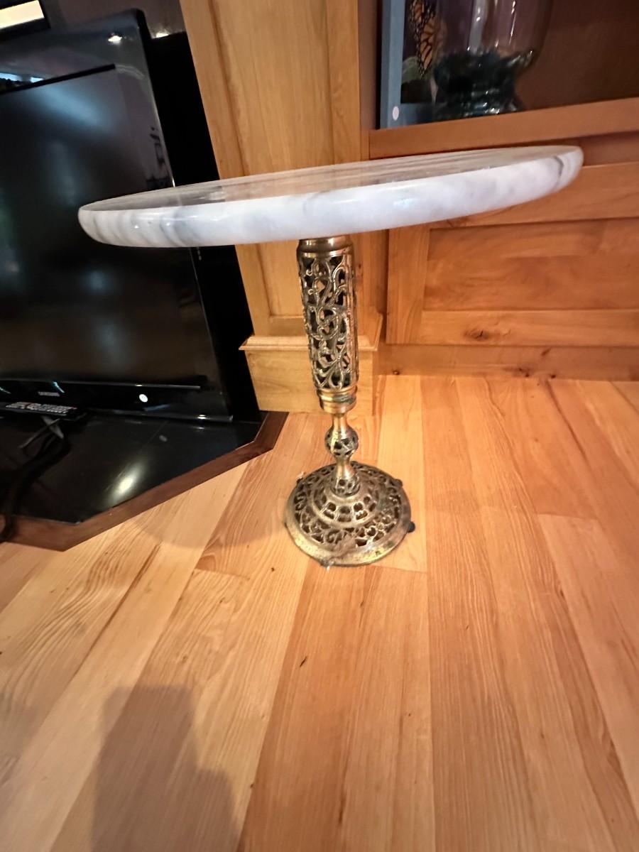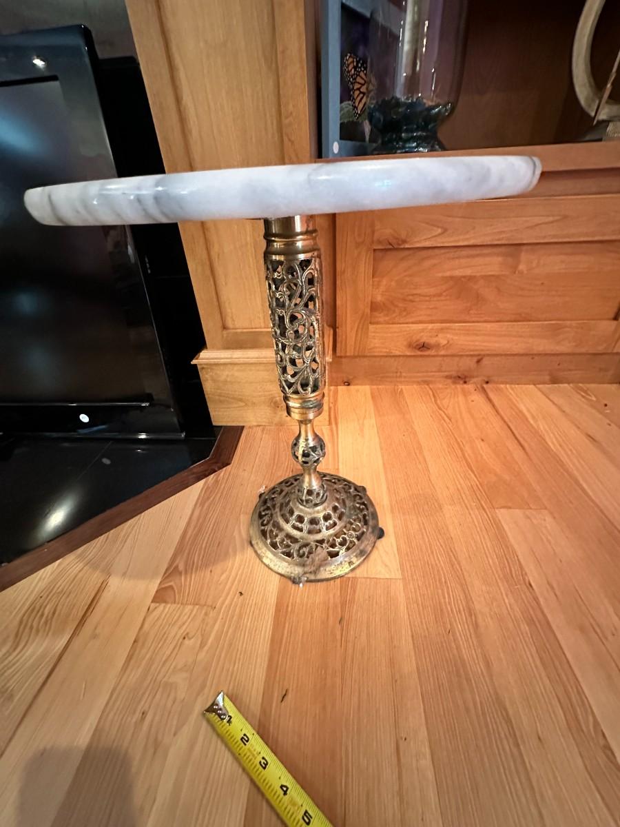 Vintage French Style Round Marble Top Brass Filigree Side Drinks Table
