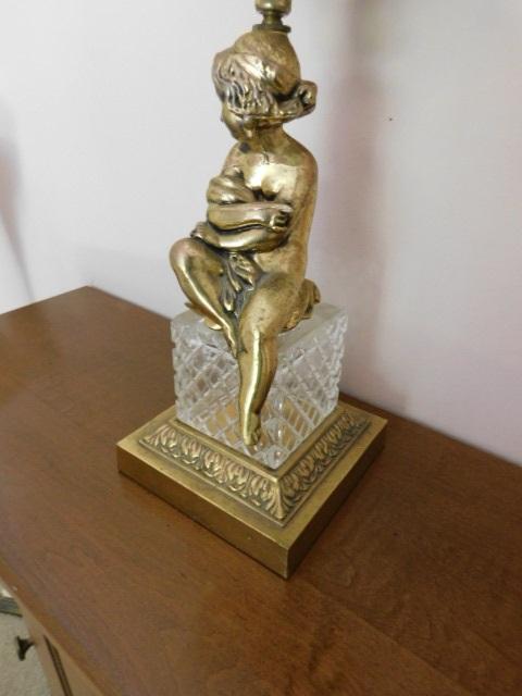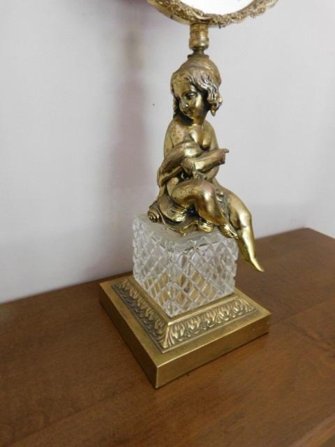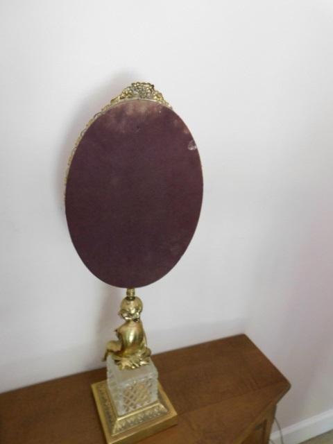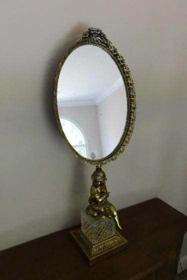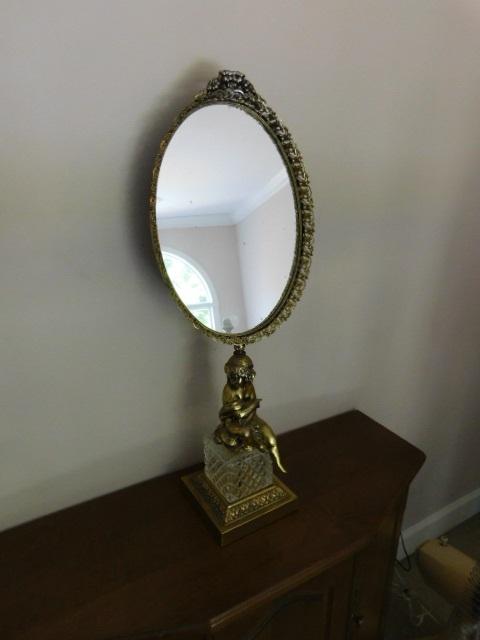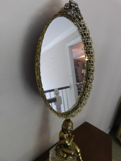 Vintage French Style Vanity Mirror with Filigree Frame and Cherub Base 26"
