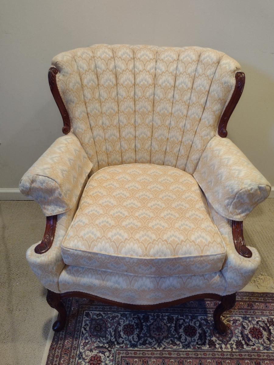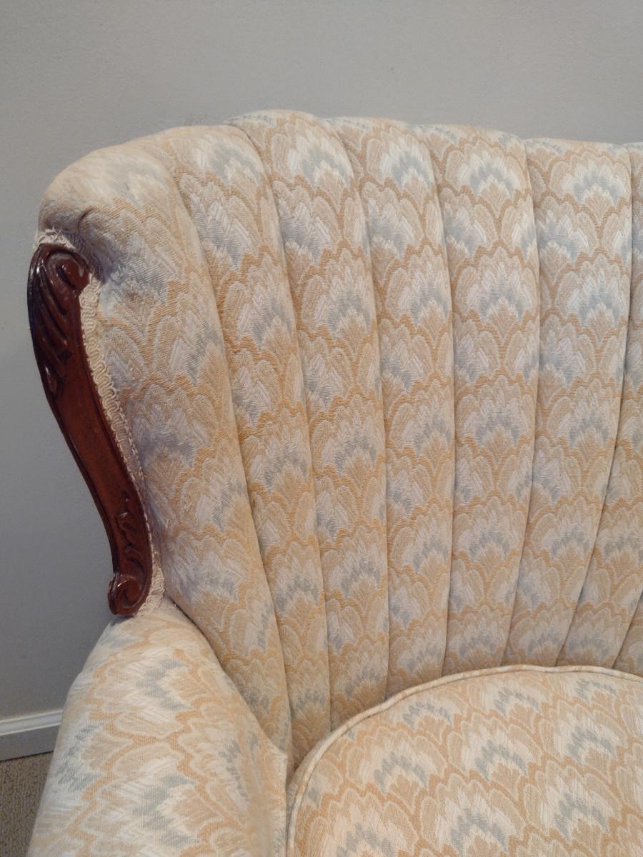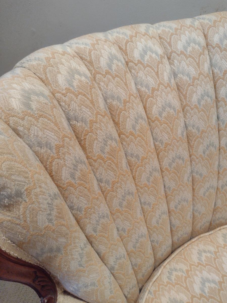 Vintage French Style Wood Frame Chair with Pleated Back- Approx 31" Wide Item stored within feet of driveway for easy and quick load.