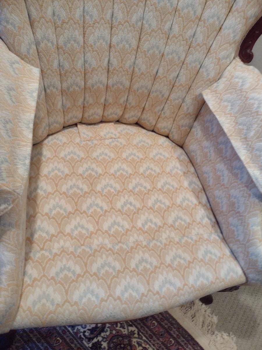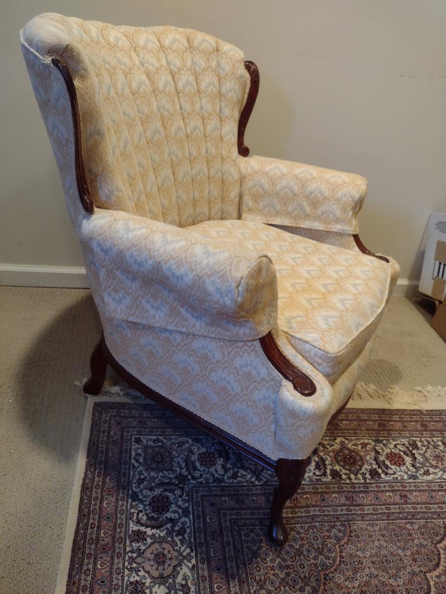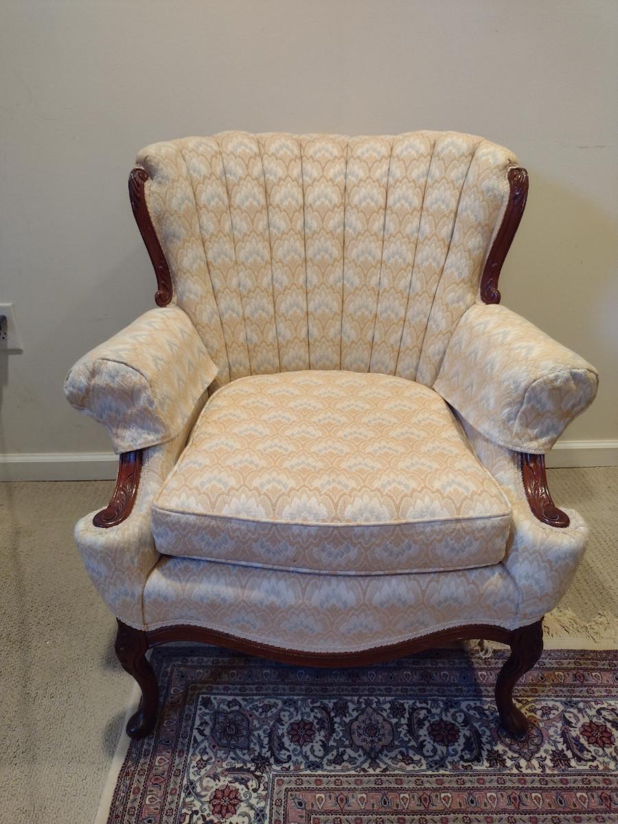 Vintage French Style Wood Frame Chair with Pleated Back- Approx 31" Wide Item stored within feet of driveway for easy and quick load.