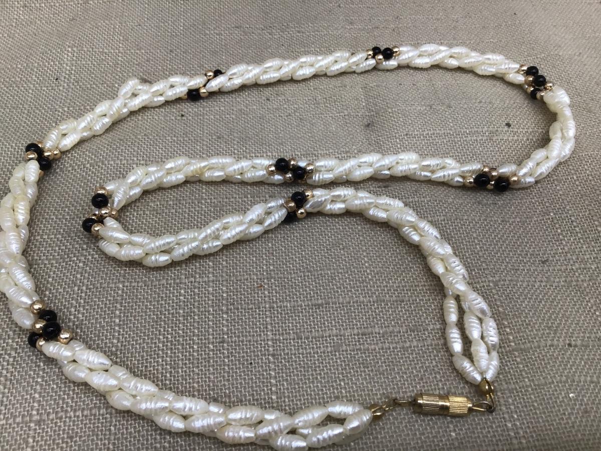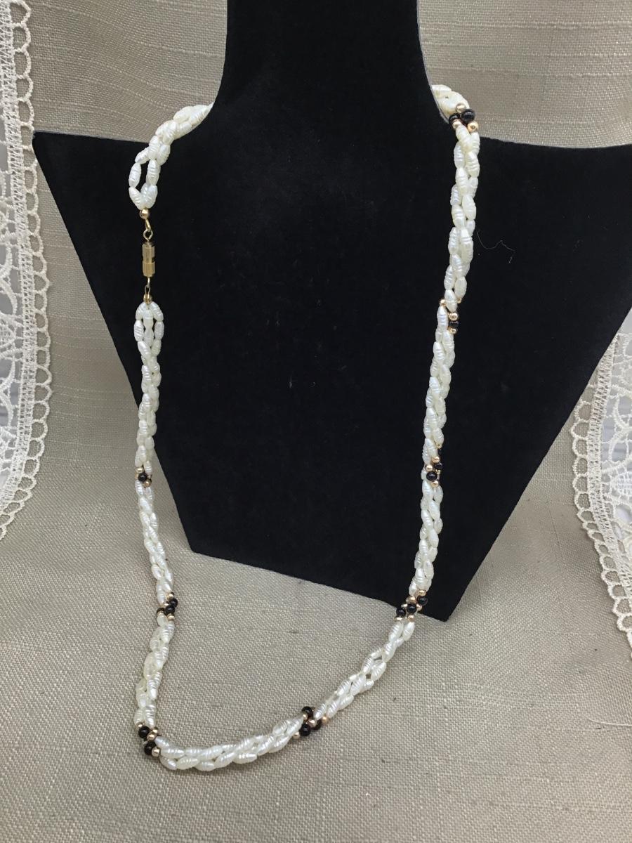 Vintage Freshwater Pearl Necklace With Black & Gold-tone Accents
