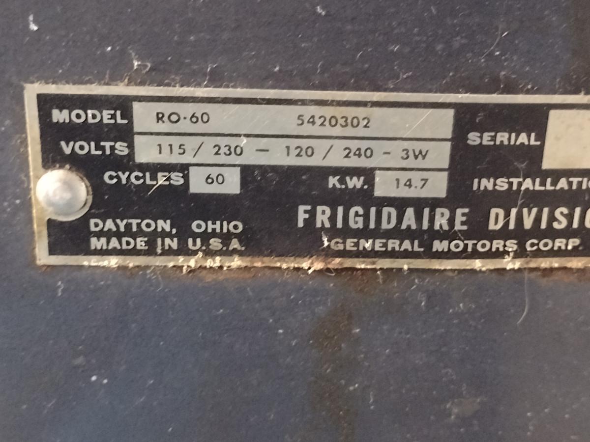 Vintage Frigidaire Electric Stove and Oven: Model RO-60