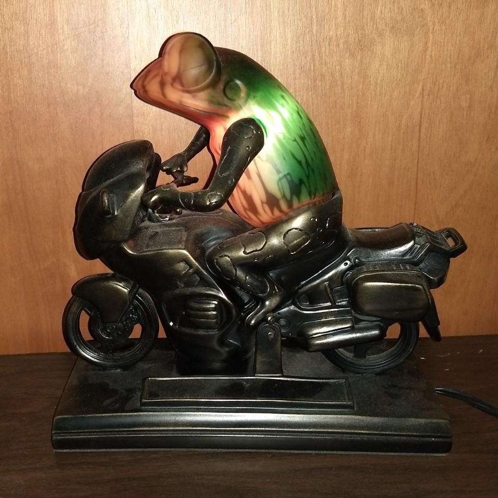 Vintage Frog on a Motorcycle Desk Lamp 10"x10"