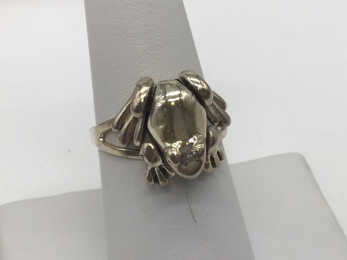 Vintage Frog Ring FrontRear Legs Move Silver Stamped