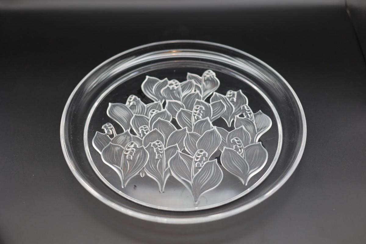Vintage Frosted Etched Crystal Heavy Round Platter