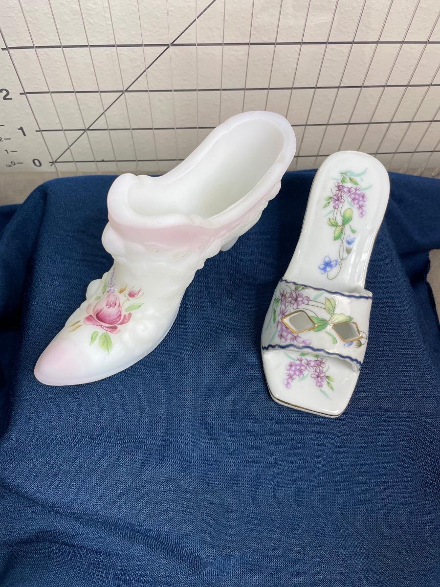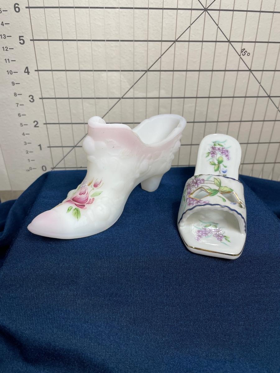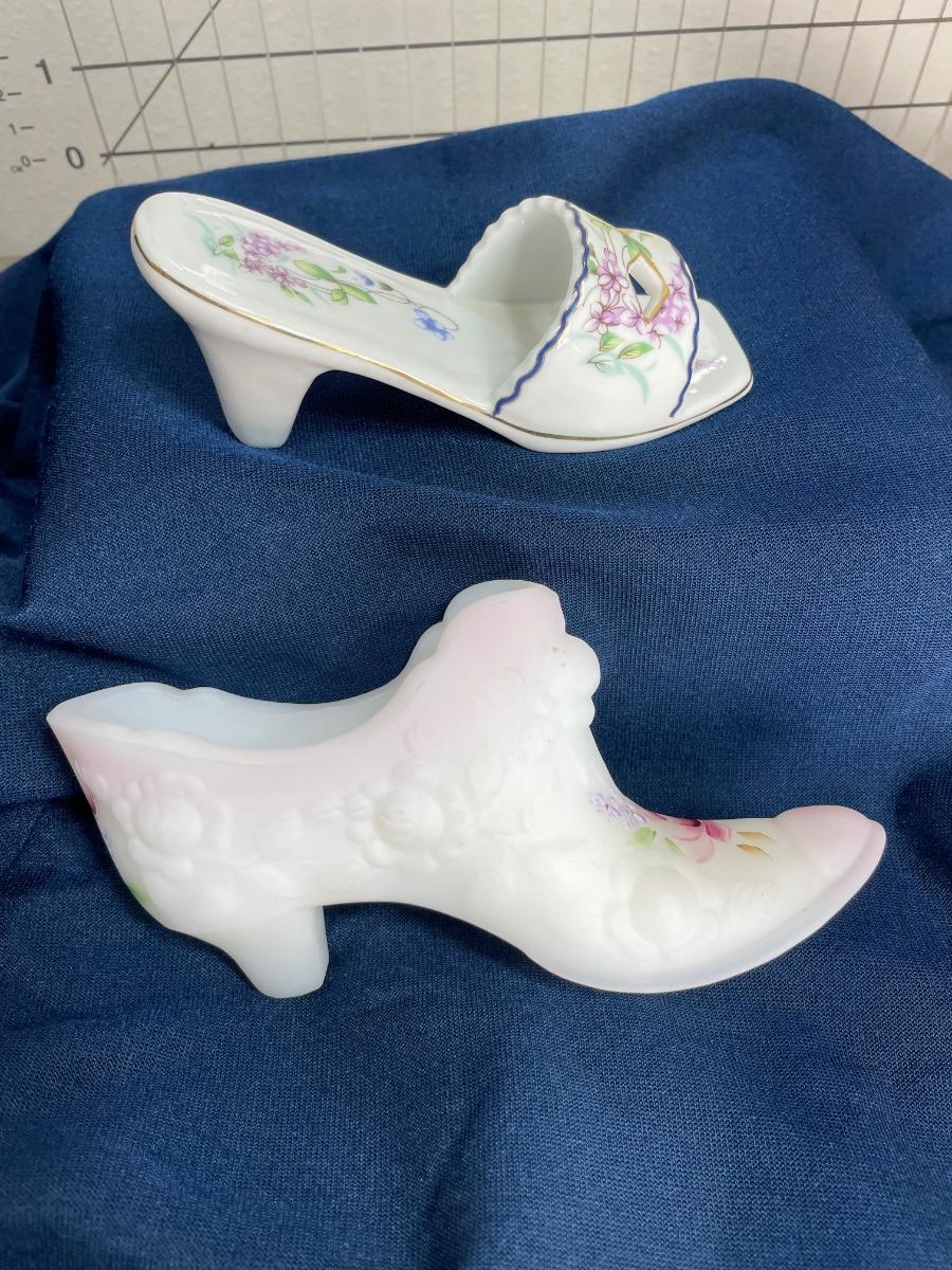 Vintage Frosted Glass and Imperial Porcelain Shoes