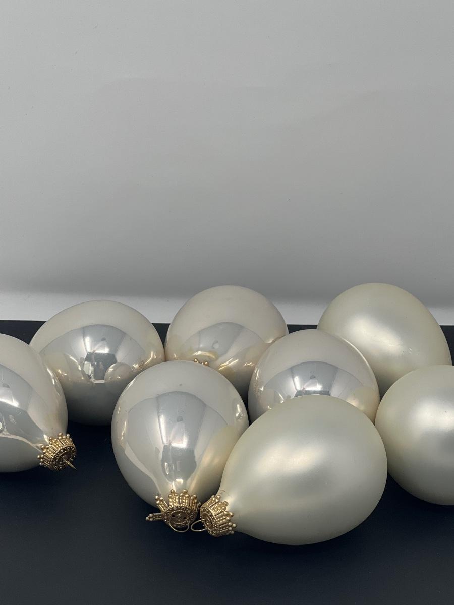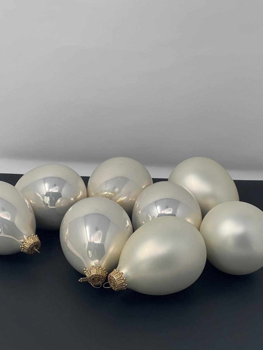Glass ornaments in tear drop shape.