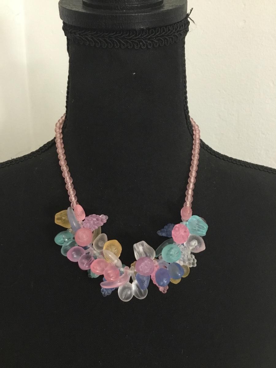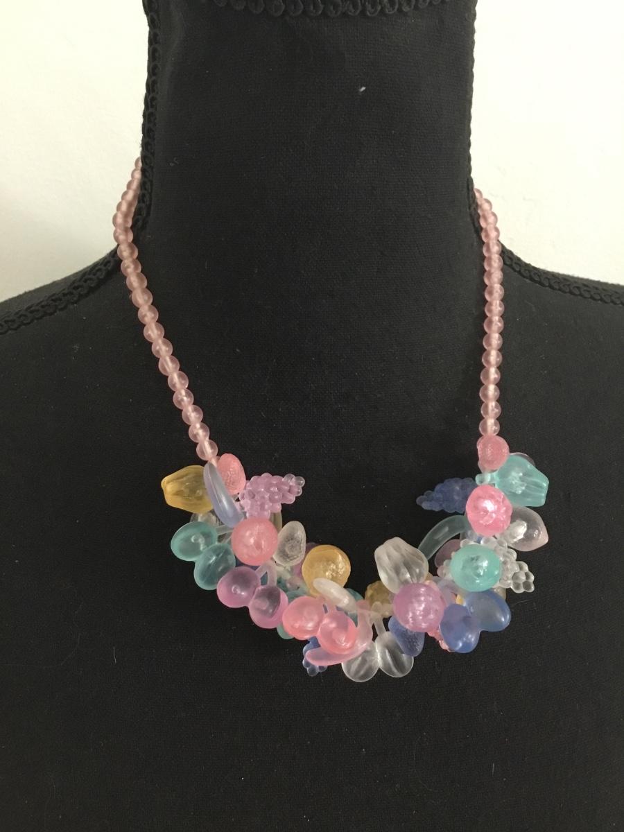 Vintage, frosted, Lucite fruit salad, necklace 50s pastel multicolor