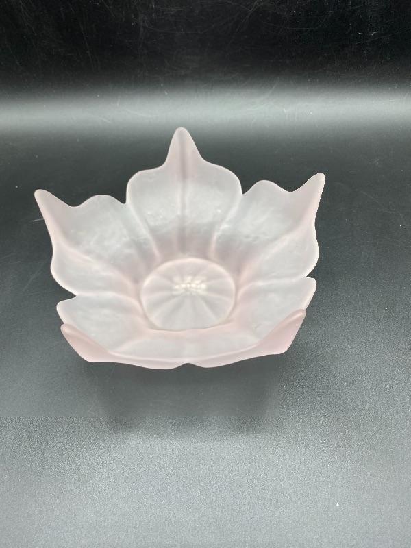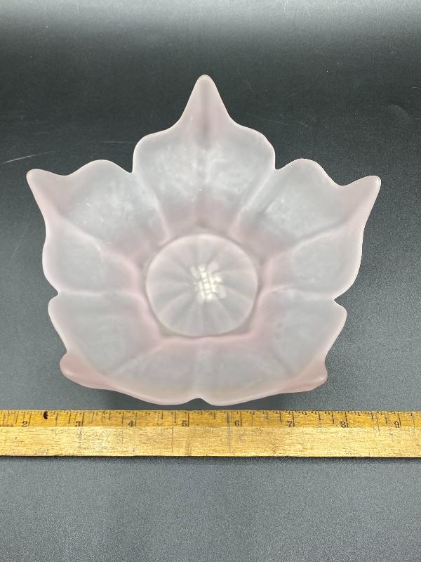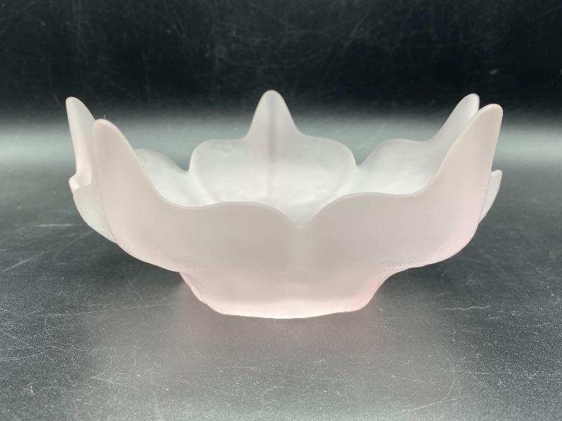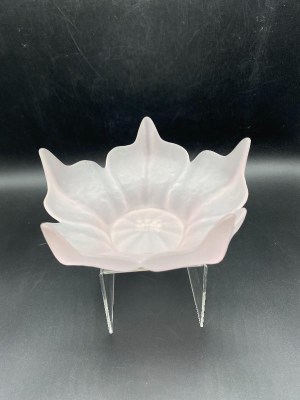 Vintage Frosted Pink Lotus Flower Dish by Viking Glass YD#011-1120-00098