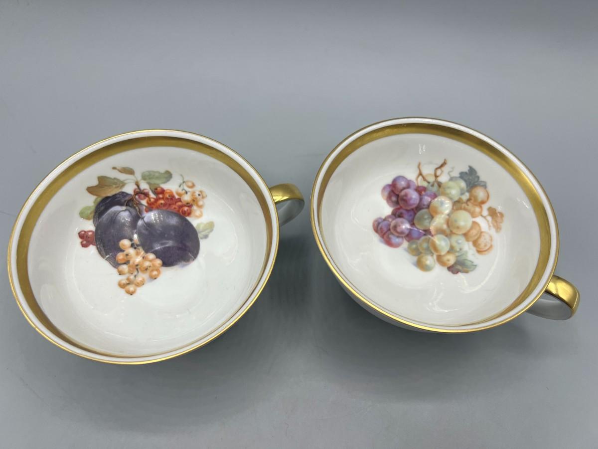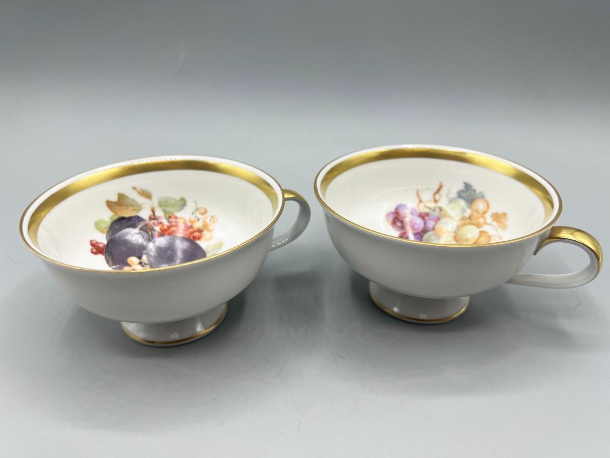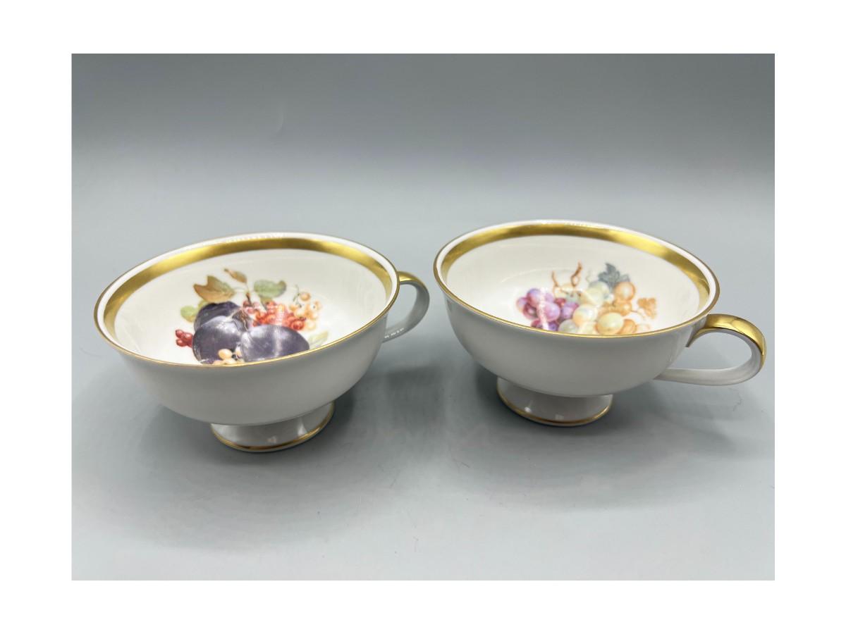 Vintage Fruit Pattern Gold Rim Teacups PMR Bavaria
