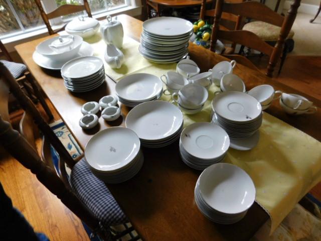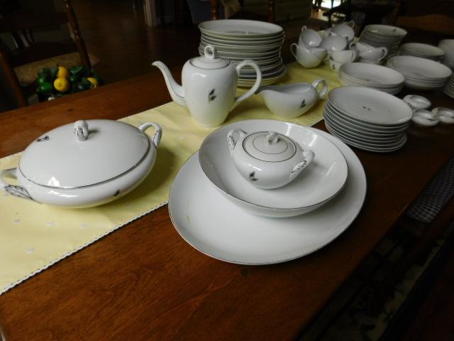 Vintage Fukagawa Arita #928 Silver Wheat China Set 105 Pieces includes Serving Items as Pictured. Some pieces may have chips about 5 or 6
