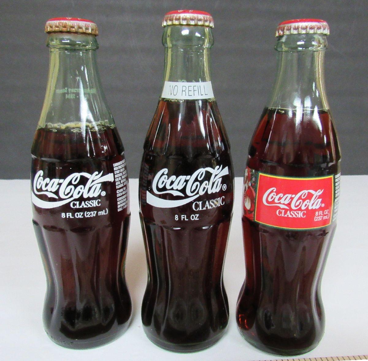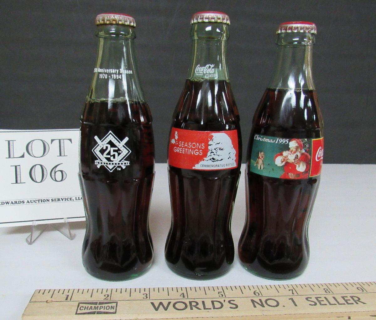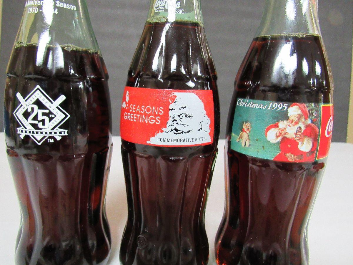 Vintage Full Coca Cola Bottles: Santa With Dog 1995, Brewers 25th 1994, Happy Holidays Santa 1993