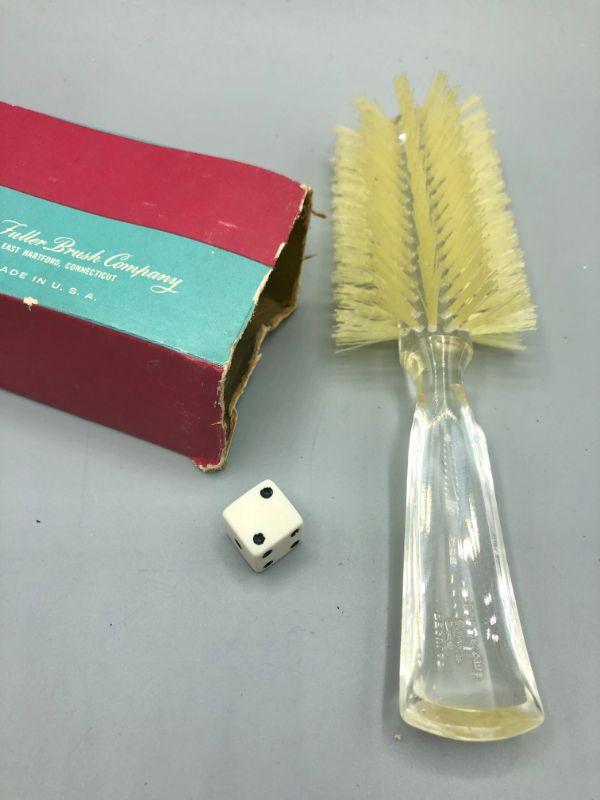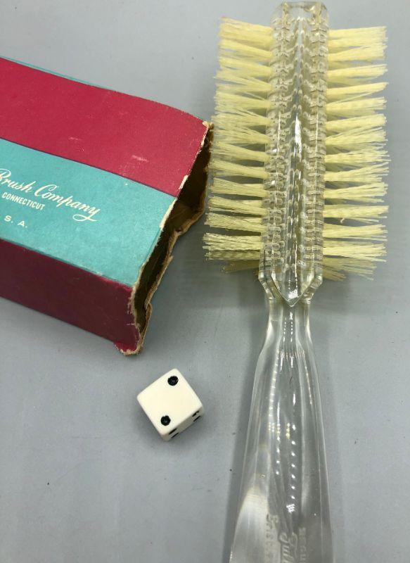 Vintage Bristlecomb hair brush from Fuller Brush Co. Comes in original box. Clear lucite handle. Box has some wear and missing end flap.