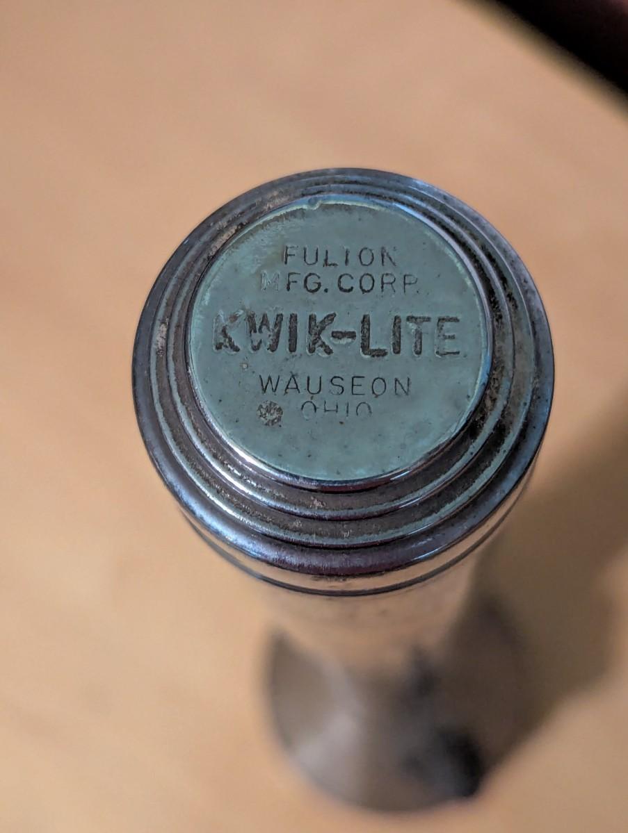 Vintage Fulton Mfg Corp Kwik-Lite Chrome Flashlight Wauseon OH