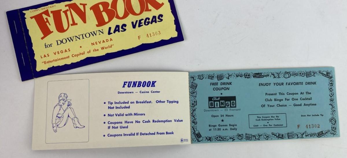 FUN BOOK for DOWNTOWN LAS VEGAS circa 1967...Unused..Includes coupons for CLUB BINGO...LAS VEGAS CLUB and EL CORTEZ...The Vegas Strip