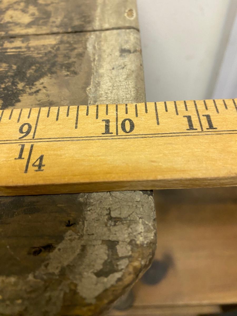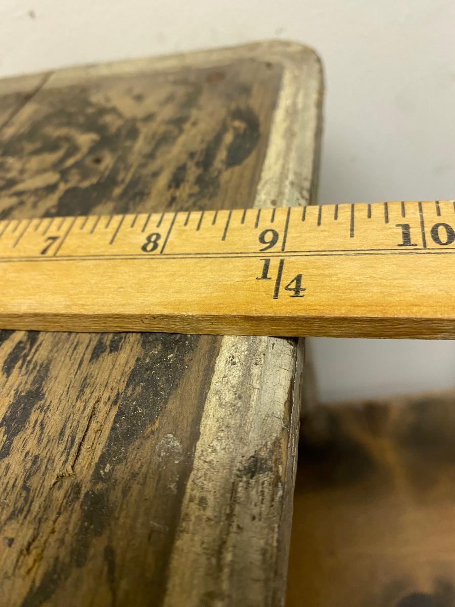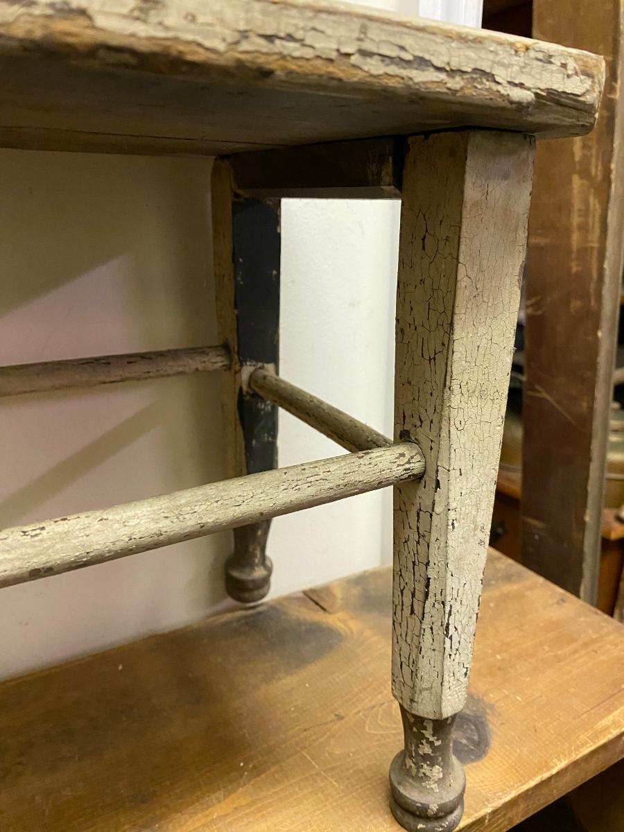 primitive hand-crafted small chair from the middle of the 20th C. Top has crack, and in distressed condition in accordance with years of use.