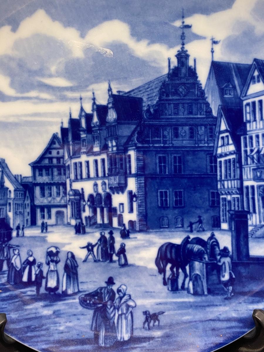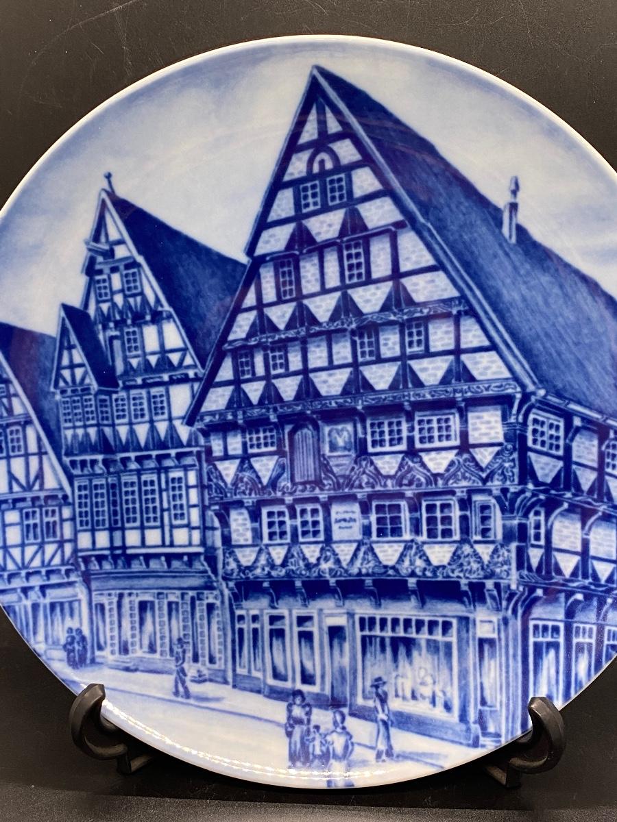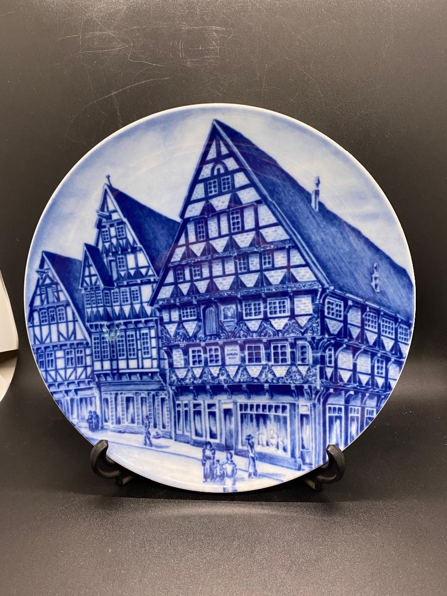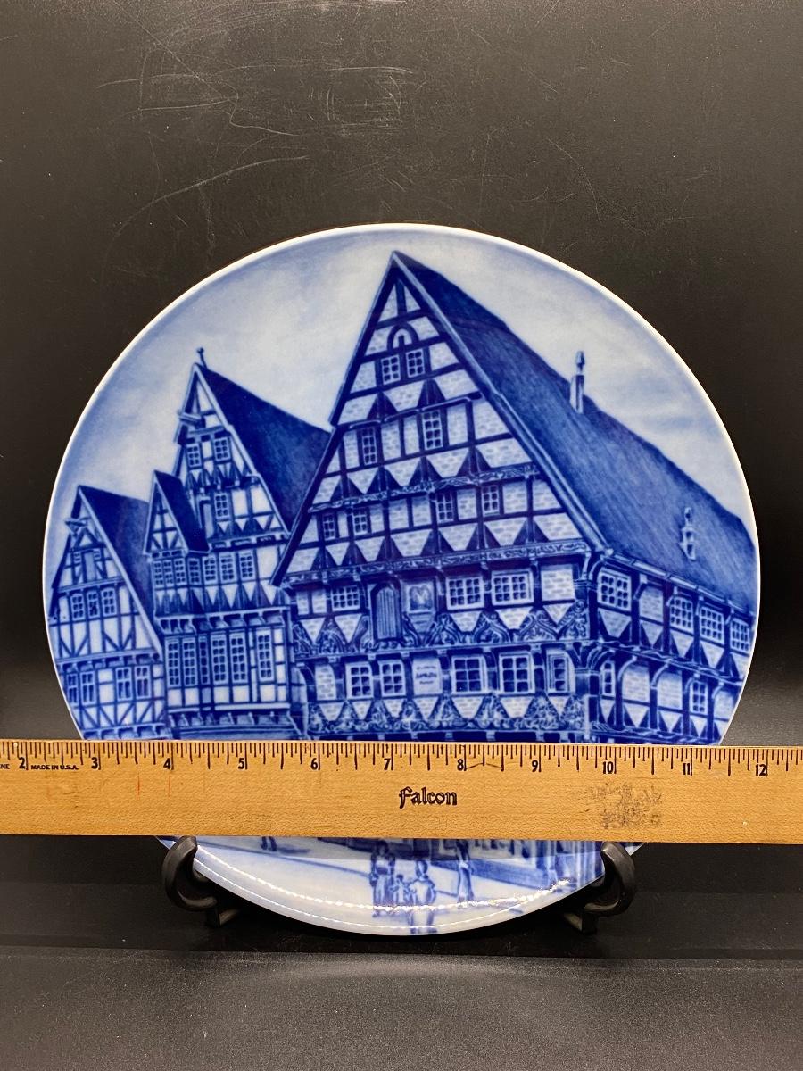 Vintage pair of scenic town image collector plates from Furstenberg West Germany. Blue and white design. Have hooks attached on back for hanging.