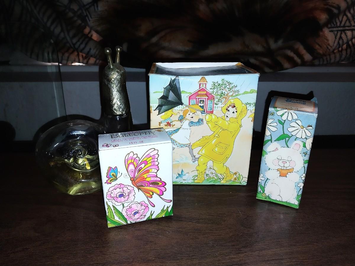 VINTAGE FUZZY BUNNY "SWEET HONESTY"-BUTTERFLY "FIELD FLOWERS"-TUG A UMBRELLA "MOONWIND"