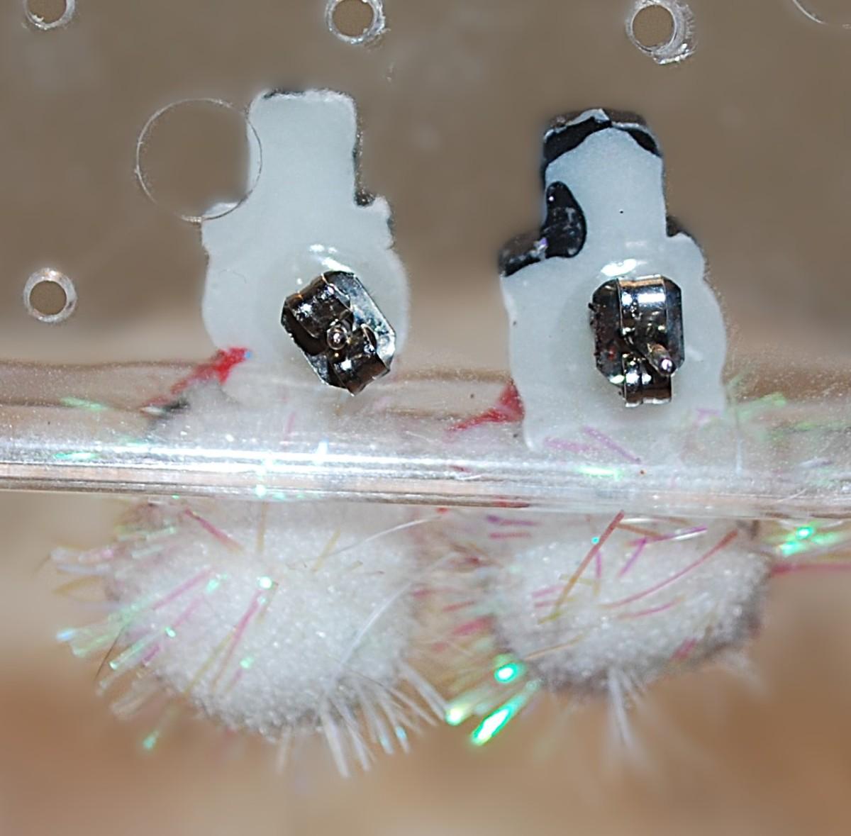 Vintage "Fuzzy" SNOWMAN EARRINGS Pair (1" x ½") with Black Hats and Red Ribbons and Stud Style Clasp