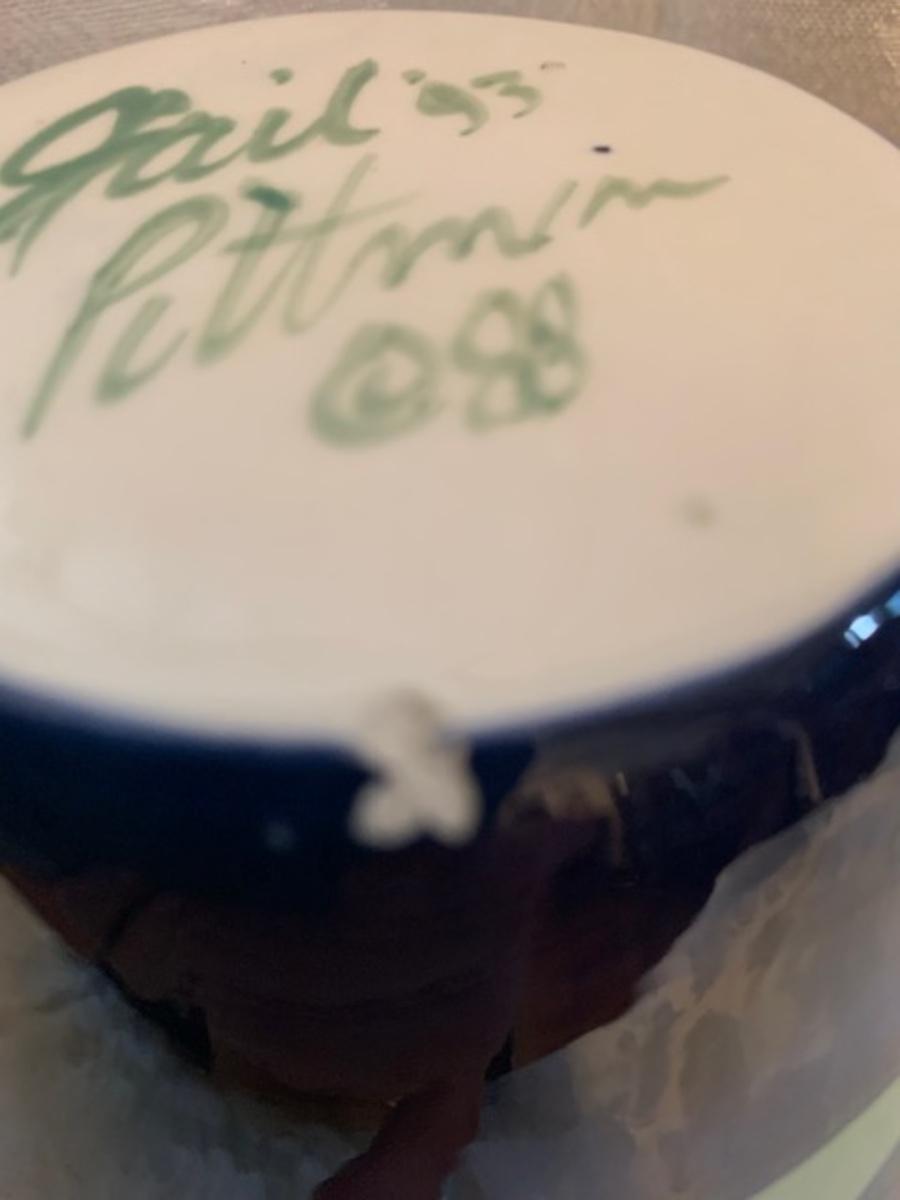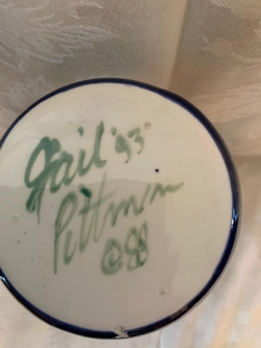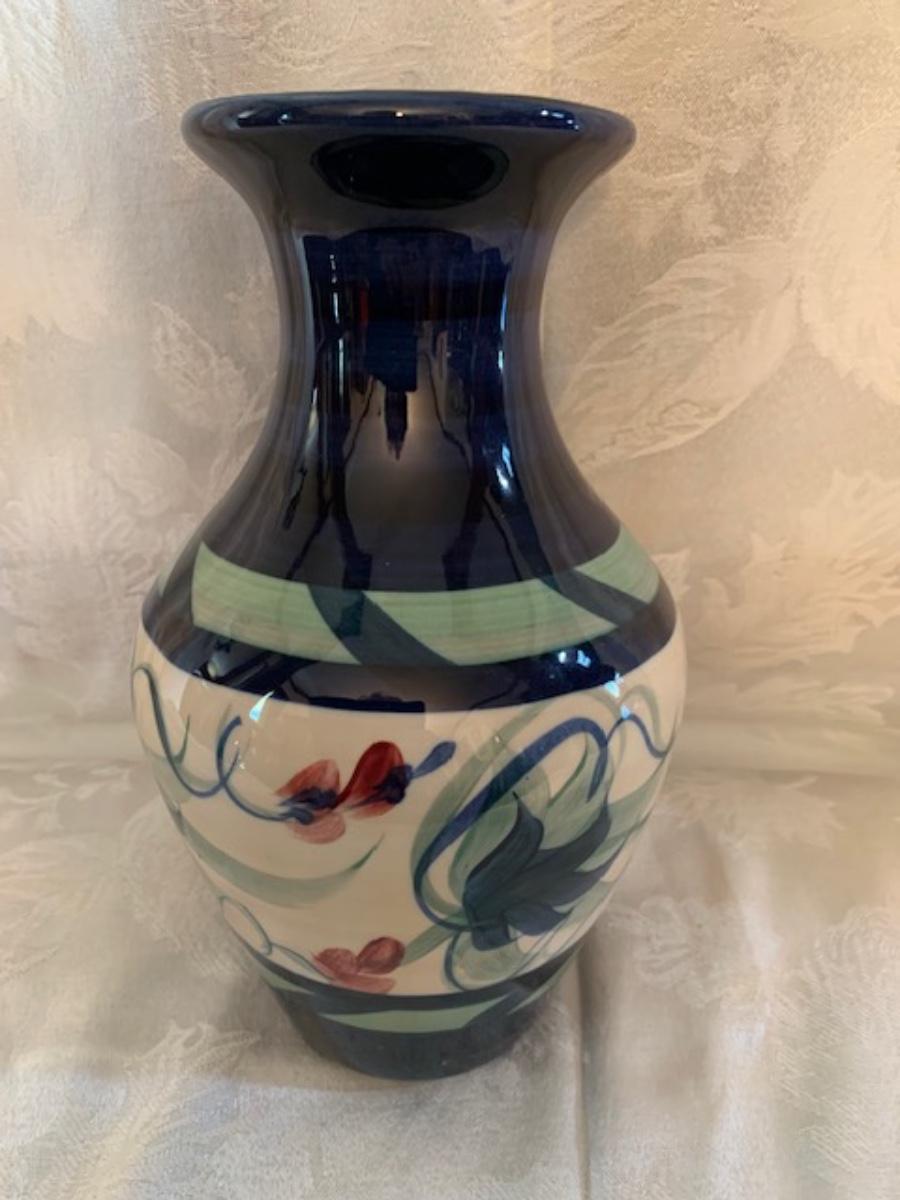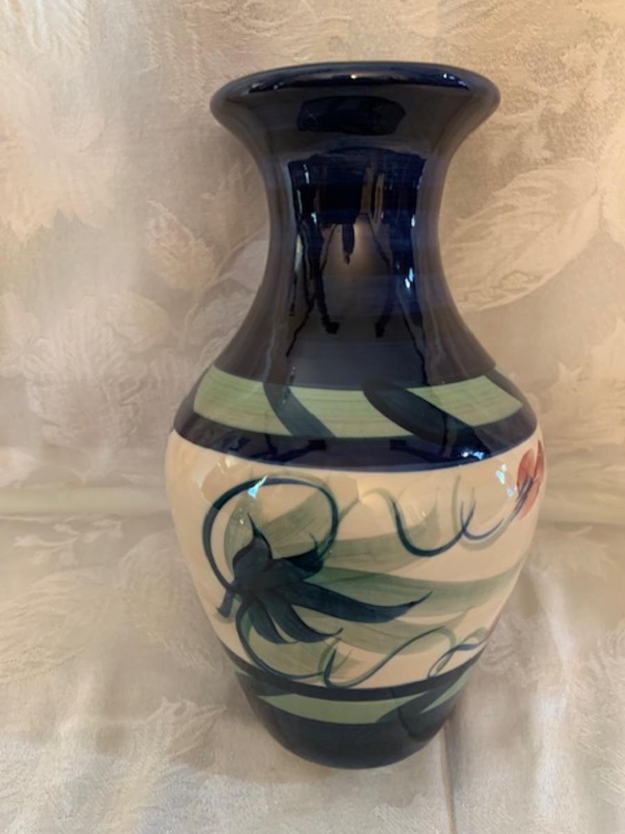Vintage Gail Pittman rare 1993 HP “Green/blue grapevine” Pattern 10”H pottery vase