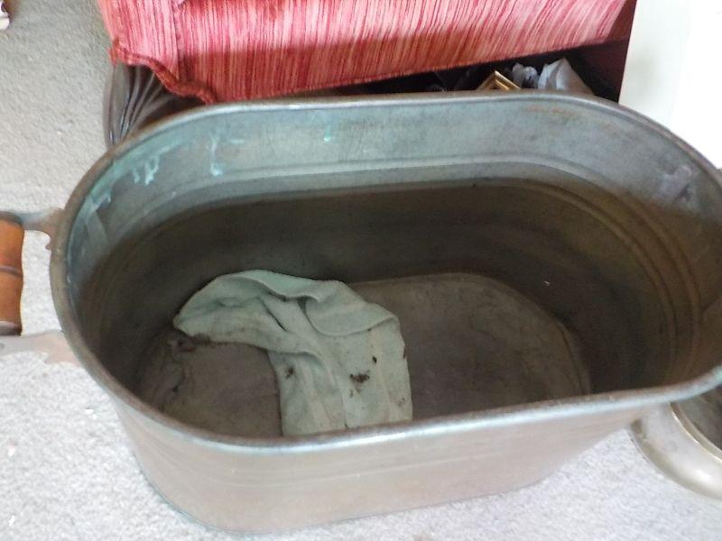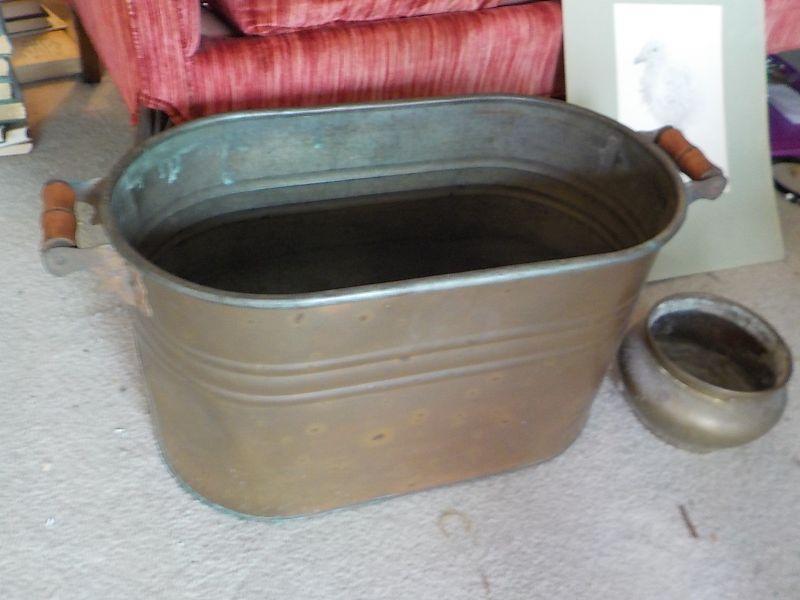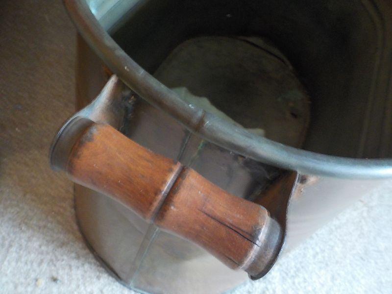 Vintage Galvanized lg Bucket with wood handles/ copper over lay.